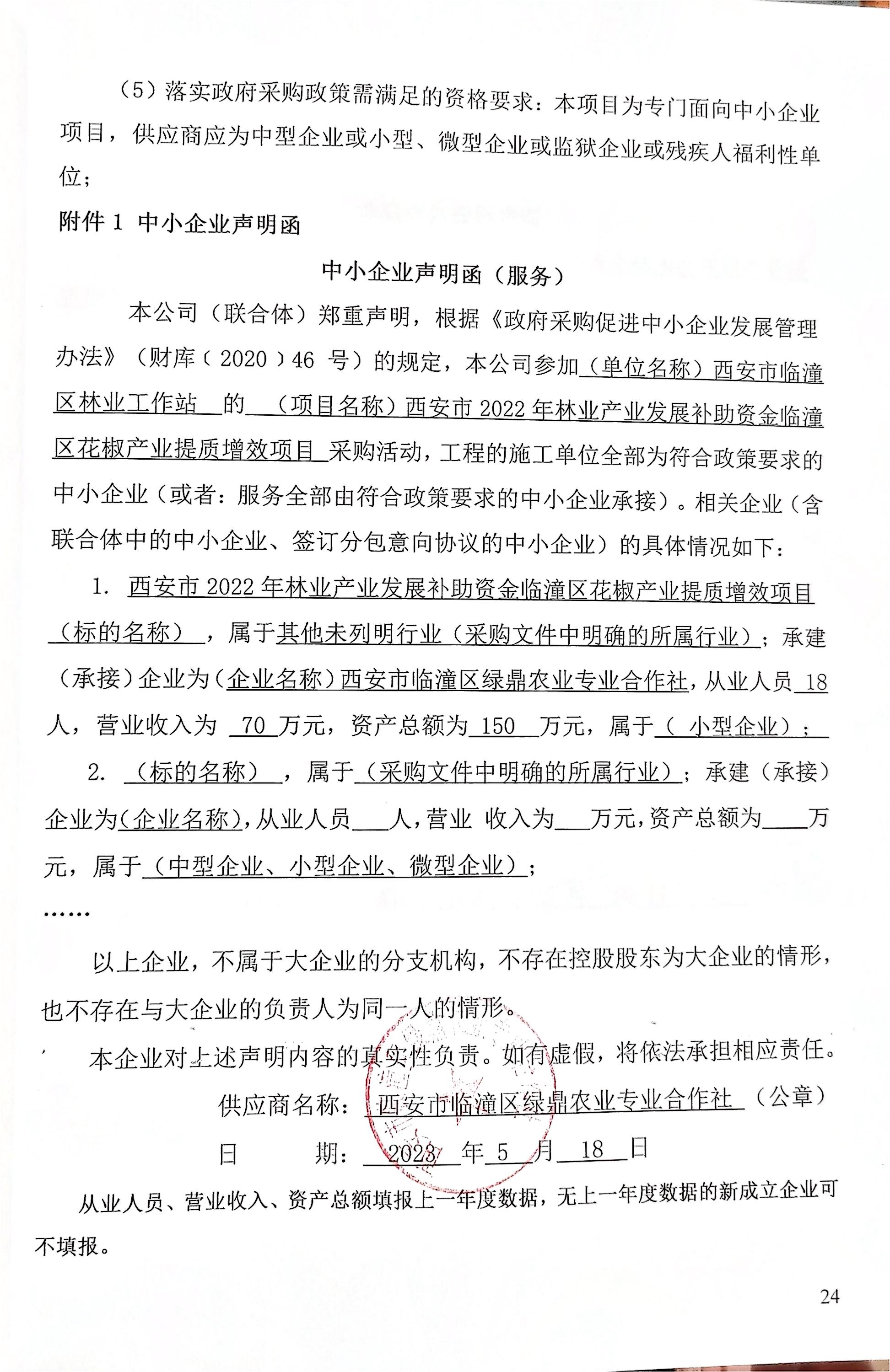 ----------------------------------招标机构发布信息原文:----------------------- 中小企业函.jpg 西安市临潼区林业工作站西安市2022年林业产业发展补助资金临潼区花椒产业提质增效项目中标(成交)明细.pdf 花椒磋商文件.pdf 十一、其他事项: ------------------------------------招标信息结束---------------------------- 标签: 中标 项目 西安市 林业 花椒 产业发展 工作站 上一篇: 2023年5月19日漳州市中心城区地块控规(含交评、地形)服务类采购项目(2023年)结果公告(合同包1) 最新5000条招标信息列表: 滚动招标 |
