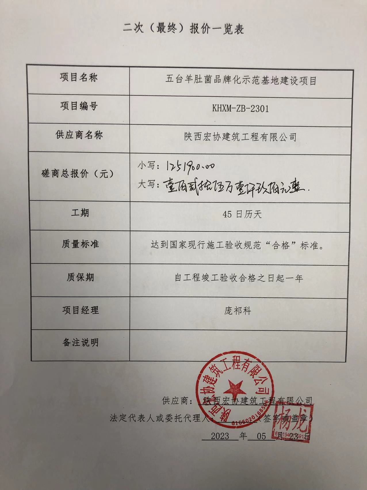 2023年5月24日五台羊肚菌品牌化示范基地建设项目中标(成交)结果公告 |