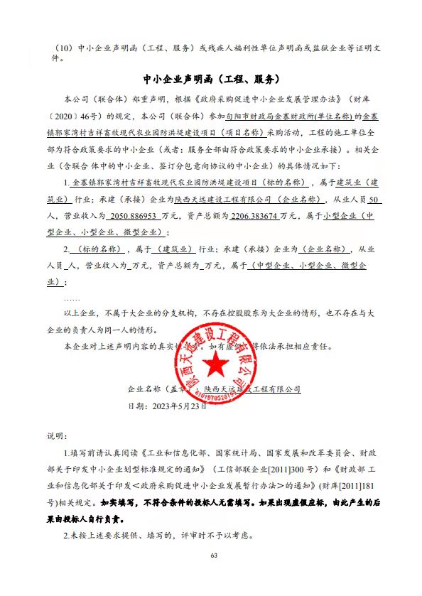 ----------------------------------招标机构发布信息原文:----------------------- 旬阳市财政局金寨财政所金寨镇郭家湾村吉祥畜牧现代农业园防洪堤建设项目中标(成交)明细.pdf CS2019 金寨镇郭家湾村吉祥畜牧现代农业园防洪堤建设项目-磋商文件(定稿).pdf 成交供应商中小企业声明函.jpg 十一、其他事项: ------------------------------------招标信息结束---------------------------- 标签: 金寨 旬阳 财政所 财政局 防洪堤 现代农业 建设项目 上一篇: 2023年5月24日常德旺达物业服务有限责任公司员工食堂餐饮服务采购供应商选定项目(第二次)中标结果公示 最新5000条招标信息列表: 滚动招标 |