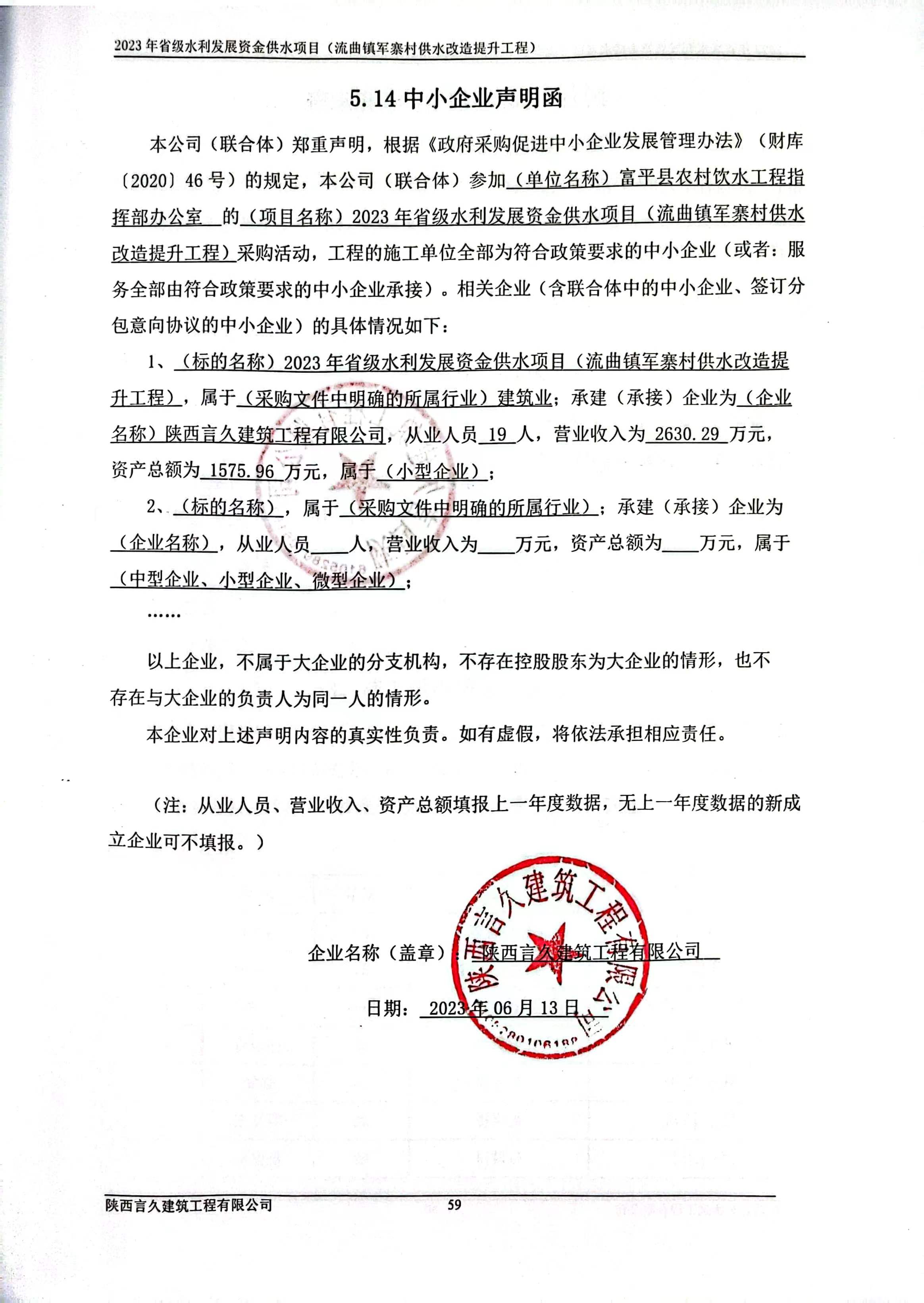 2023年6月14日富平县水务局(本级)2023年省级水利发展资金供水项目(流曲镇军寨村供水改造提升工程)中标(成交)结果公告 |