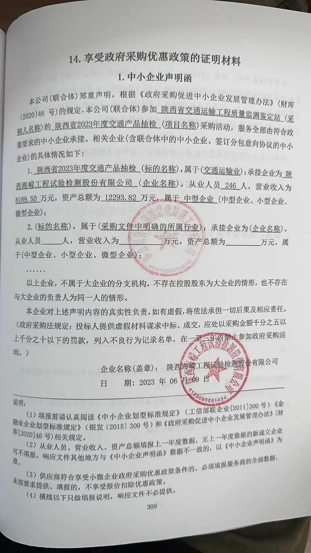 2023年6月14日陕西省2023年度交通产品抽检中标(成交)结果公告 |