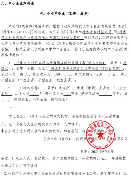 2023年6月15日神木市乡村振兴局尔林兔镇庙壕村井灌工程中标(成交)结果公告 |