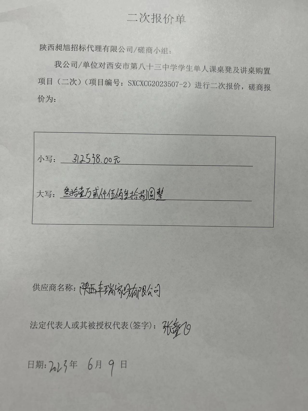 2023年6月16日西安市第八十三中学学生单人课桌凳及讲桌购置项目(二次)中标(成交)结果公告 |