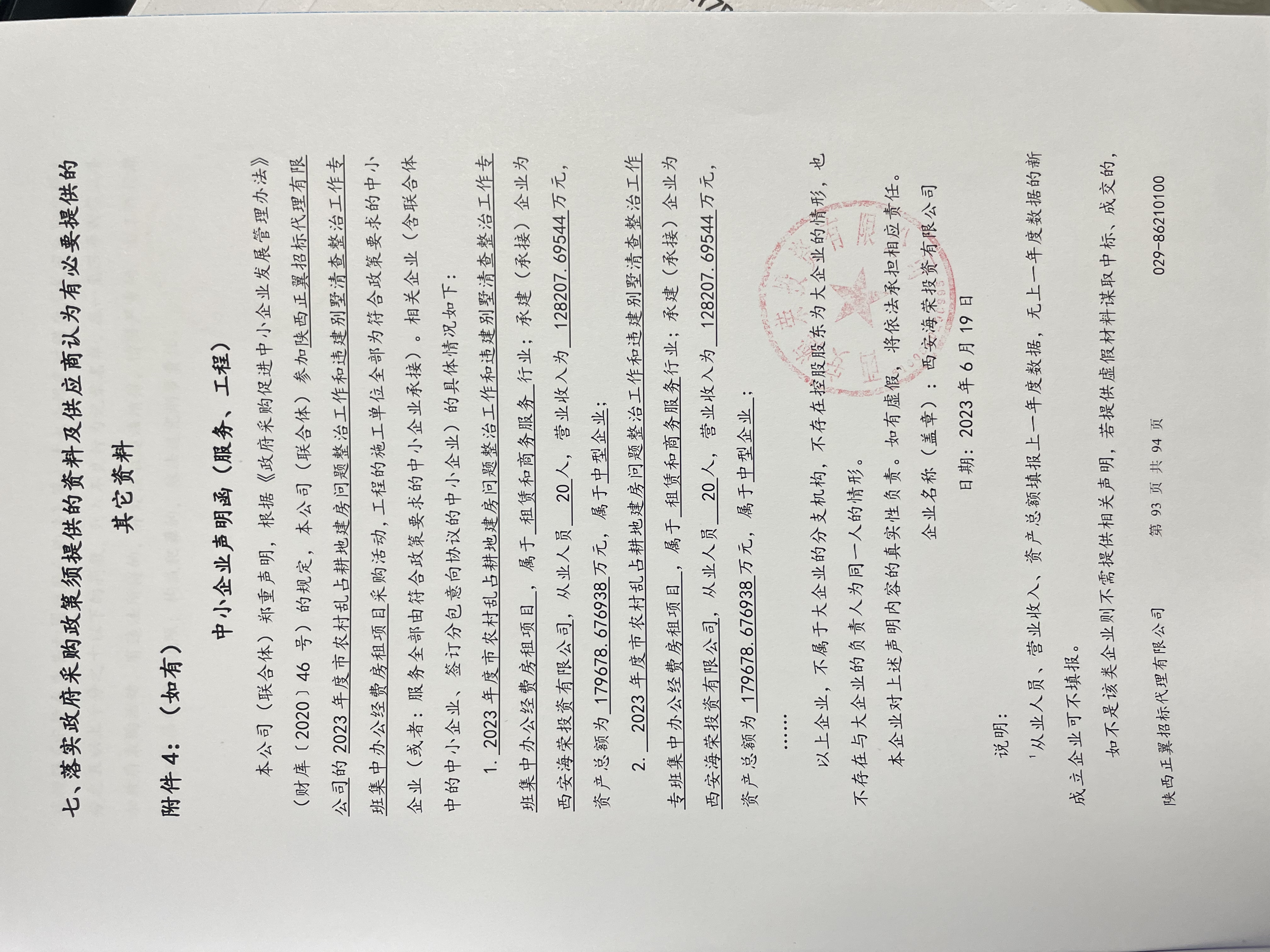 ----------------------------------招标机构发布信息原文:----------------------- 2023年度市农村乱占耕地建房问题整治工作和违建别墅清查整治工作专班集中办公经费房租项目报价明细附件.pdf 2023年度市农村乱占耕地建房问题整治工作和违建别墅清查整治工作专班集中办公经费房租项目-文件集.zip DY1106 中小企业声明函.jpg 十一、其他事项: ------------------------------------招标信息结束---------------------------- 标签: 中标 项目 整治工作 西安市 耕地 房租 经费 上一篇: 2023年6月25日广东省固定监测站新建项目(二期)结果公告 最新5000条招标信息列表: 滚动招标 |