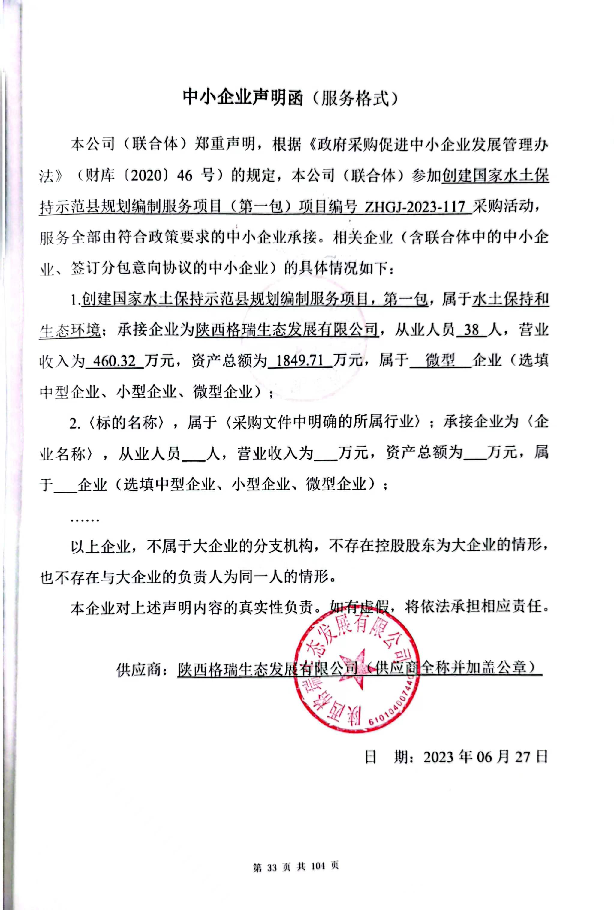 2023年6月28日黄陵县水土保持工作站创建国家水土保持示范县规划编制服务项目中标(成交)结果公告 |
