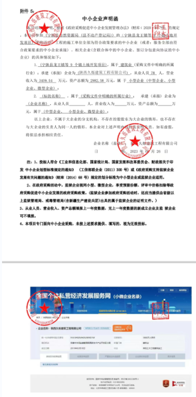----------------------------------招标机构发布信息原文:----------------------- 中小企业声明函.png 宁陕县自然资源局(县不动产登记局)宁陕县龙王镇等9个镇土地开发项目中标(成交)明细.pdf 十一、其他事项: ------------------------------------招标信息结束---------------------------- 标签: 中标 宁陕县 龙王 开发项目 土地 公告 上一篇: 2023年6月29日湖北美术学院昙华林校区3号教学楼网络建设项目中标(成交)结果公告 最新5000条招标信息列表: 滚动招标 |
