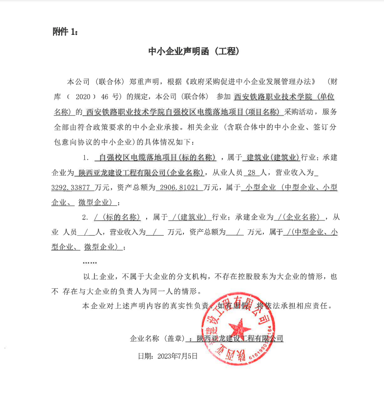 2023年7月7日西安铁路职业技术学院自强校区电缆落地项目中标(成交)结果公告 |