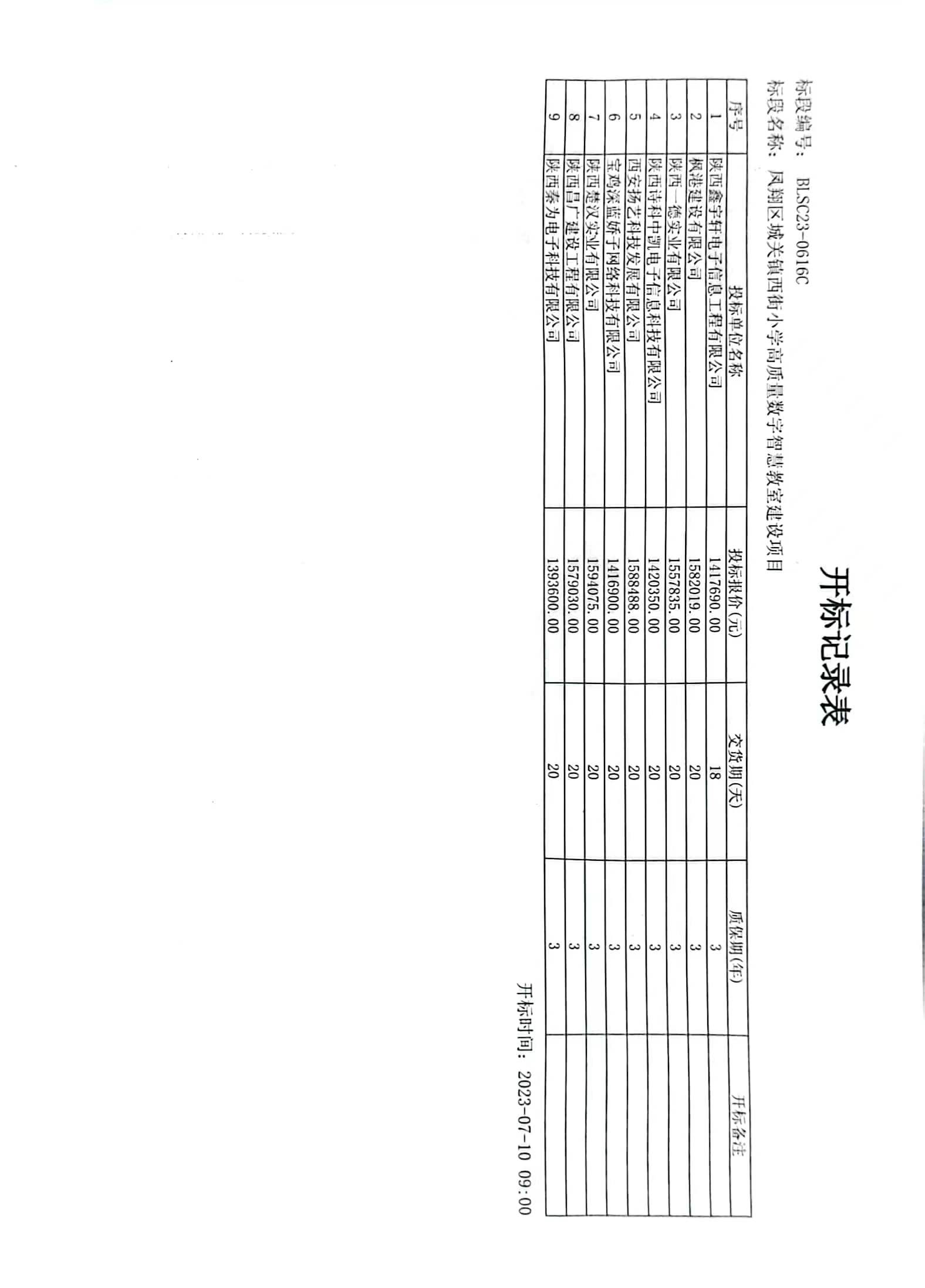 2023年7月11日凤翔区城关镇西街小学高质量数字智慧教室建设项目中标(成交)结果公告 |