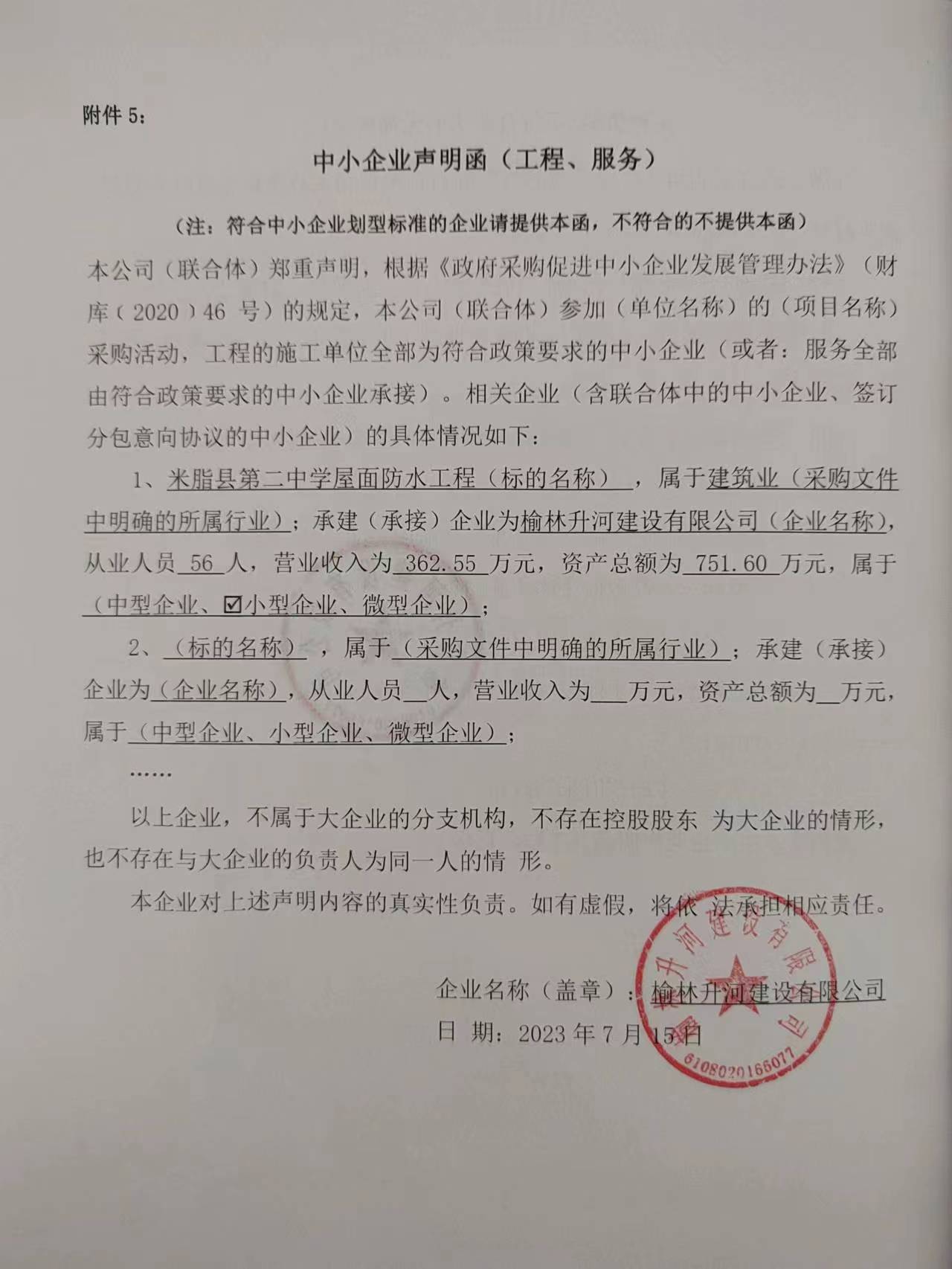 2023年7月16日米脂县第二中学屋面防水工程中标(成交)结果公告 |