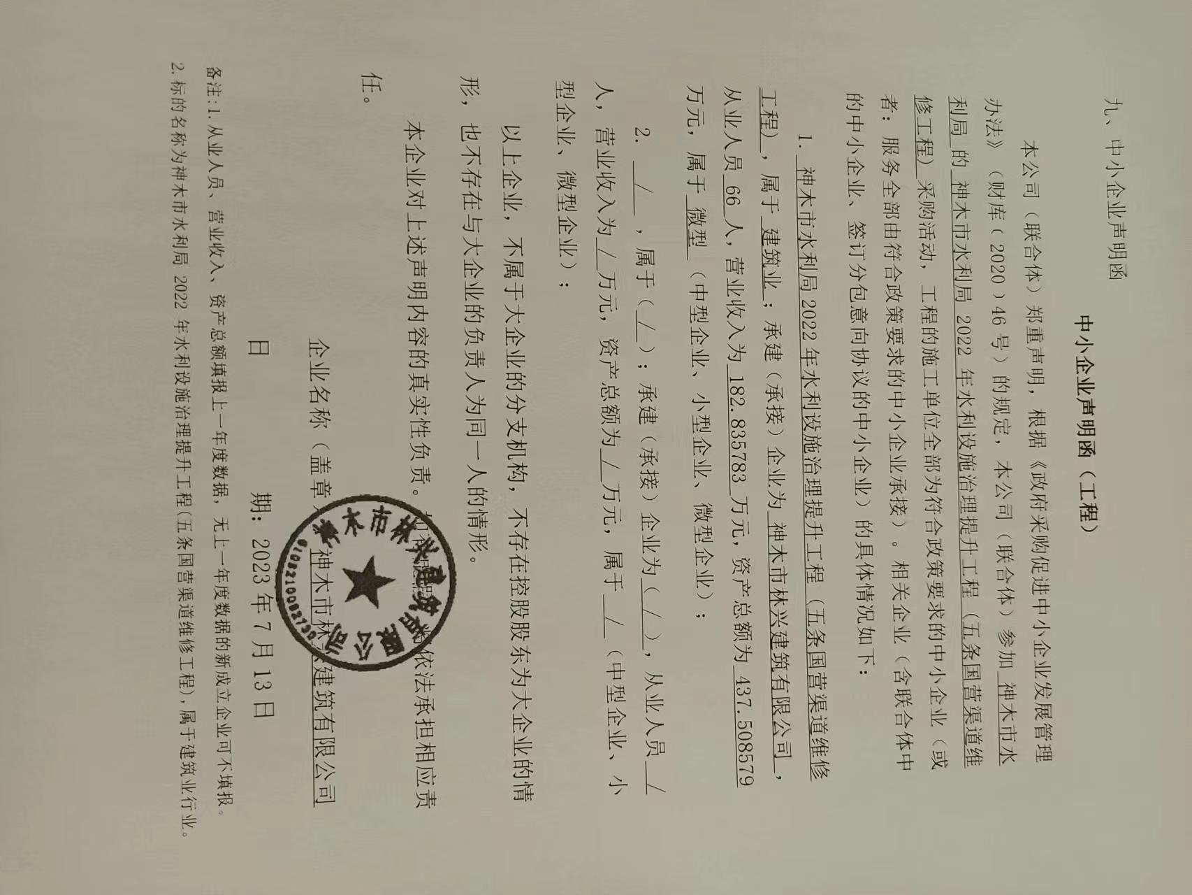2023年7月18日神木市水利局2022年水利设施治理提升工程(五条国营渠道维修工程)中标(成交)结果公告 |