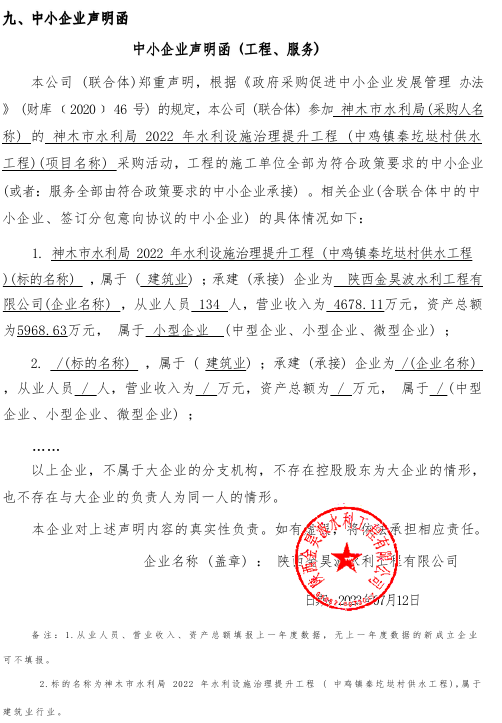 2023年7月18日神木市水利局2022年水利设施治理提升工程(中鸡镇秦圪垯村供水工程)中标(成交)结果公告 |