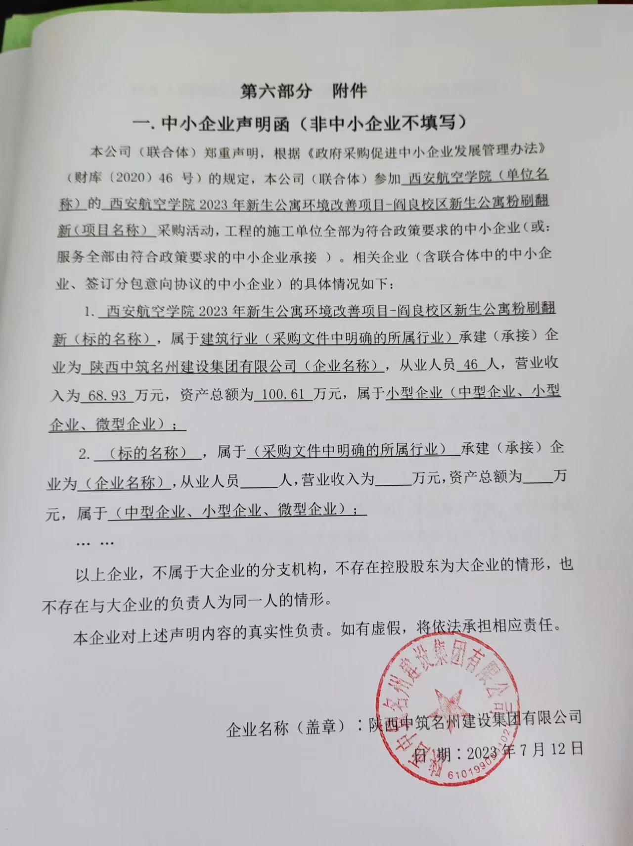 2023年7月19日西安航空学院2023年新生公寓环境改善项目-阎良校区新生公寓粉刷翻新成交结果公告 |