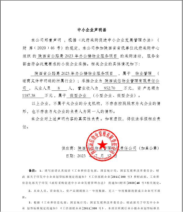 ----------------------------------招标机构发布信息原文:----------------------- 陕西省公路局2023年办公楼物业服务项目中标(成交)明细.pdf 报价表.png 中小微企业声明函.png 陕西省公路局2023年办公楼物业服务项目.pdf 十一、其他事项: ------------------------------------招标信息结束---------------------------- 标签: 中标 陕西省 公路局 办公楼 服务项目 物业 公告 上一篇: 2023年7月20日2023年度清远市清城区飞来峡镇高标准农田改造提升建设项目结果公告 最新5000条招标信息列表: 滚动招标 |