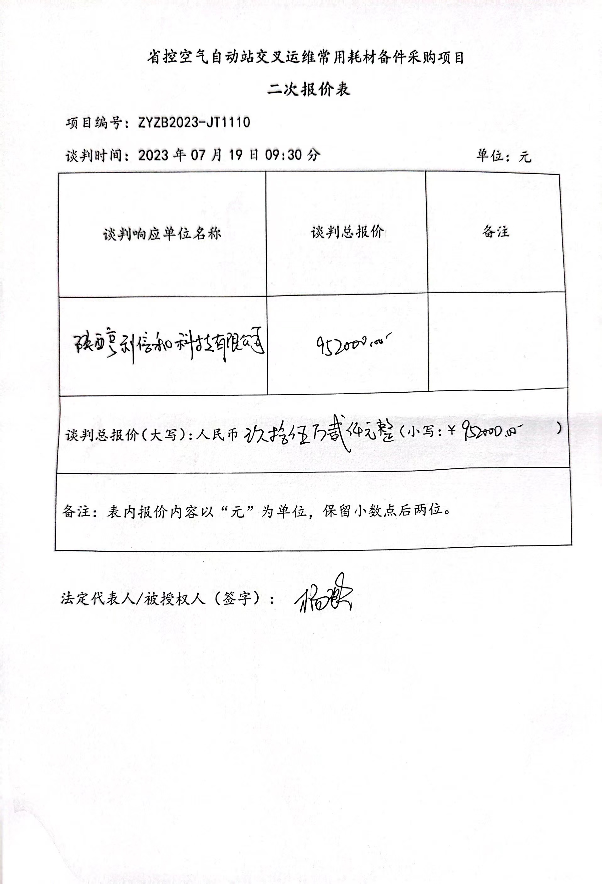 ----------------------------------招标机构发布信息原文:----------------------- 谈判文件-JT1110省控空气自动站交叉运维常用耗材备件采购项目.pdf 西安市环境监测站省控空气自动站交叉运维常用耗材备件采购项目中标(成交)明细.pdf JT1110二次报价表.jpg JT1110分项报价表.pdf 十一、其他事项: ------------------------------------招标信息结束---------------------------- 标签: 项目 中标 采购 西安市 备件 空气 公告 上一篇: 2023年7月20日盐亭县自然资源局盐亭县2022年度国土变更调查和2023年自然资源综合动态监测中标(成交)结果公告 最新5000条招标信息列表: 滚动招标 |