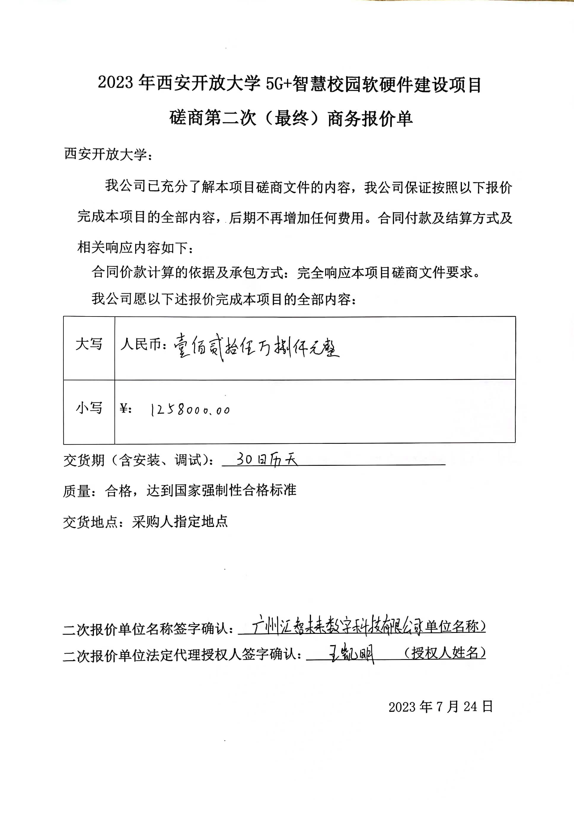 2023年7月25日2023年西安开放大学5G+智慧校园软硬件建设项目中标(成交)结果公告 |