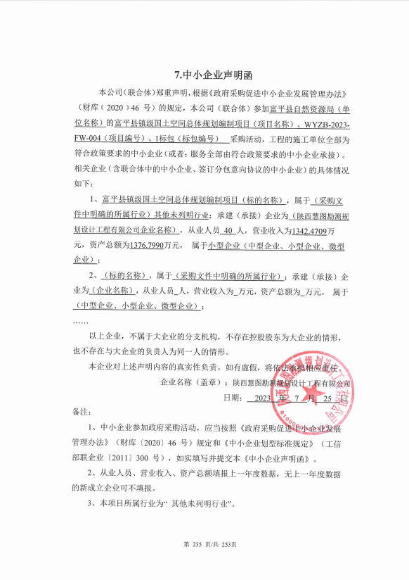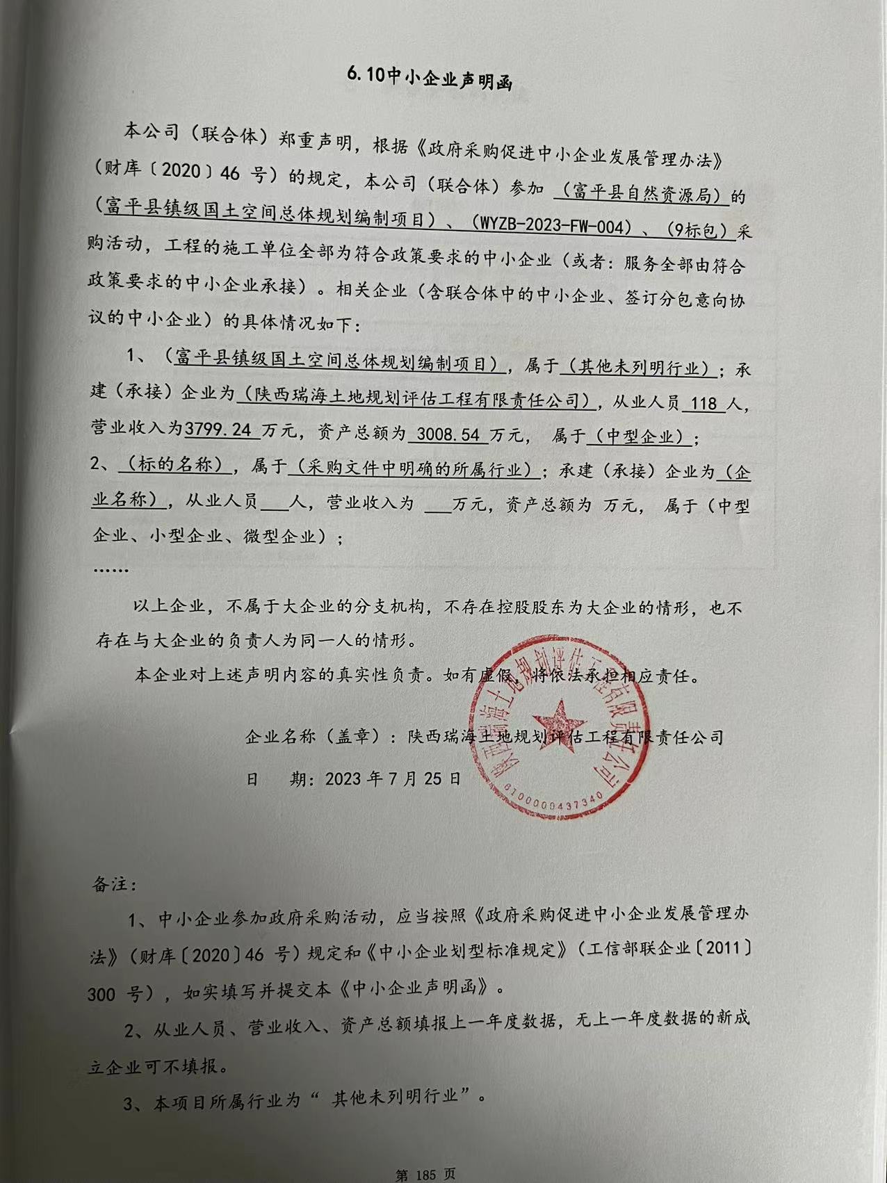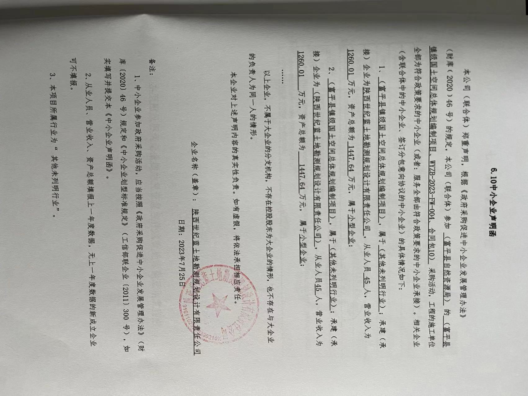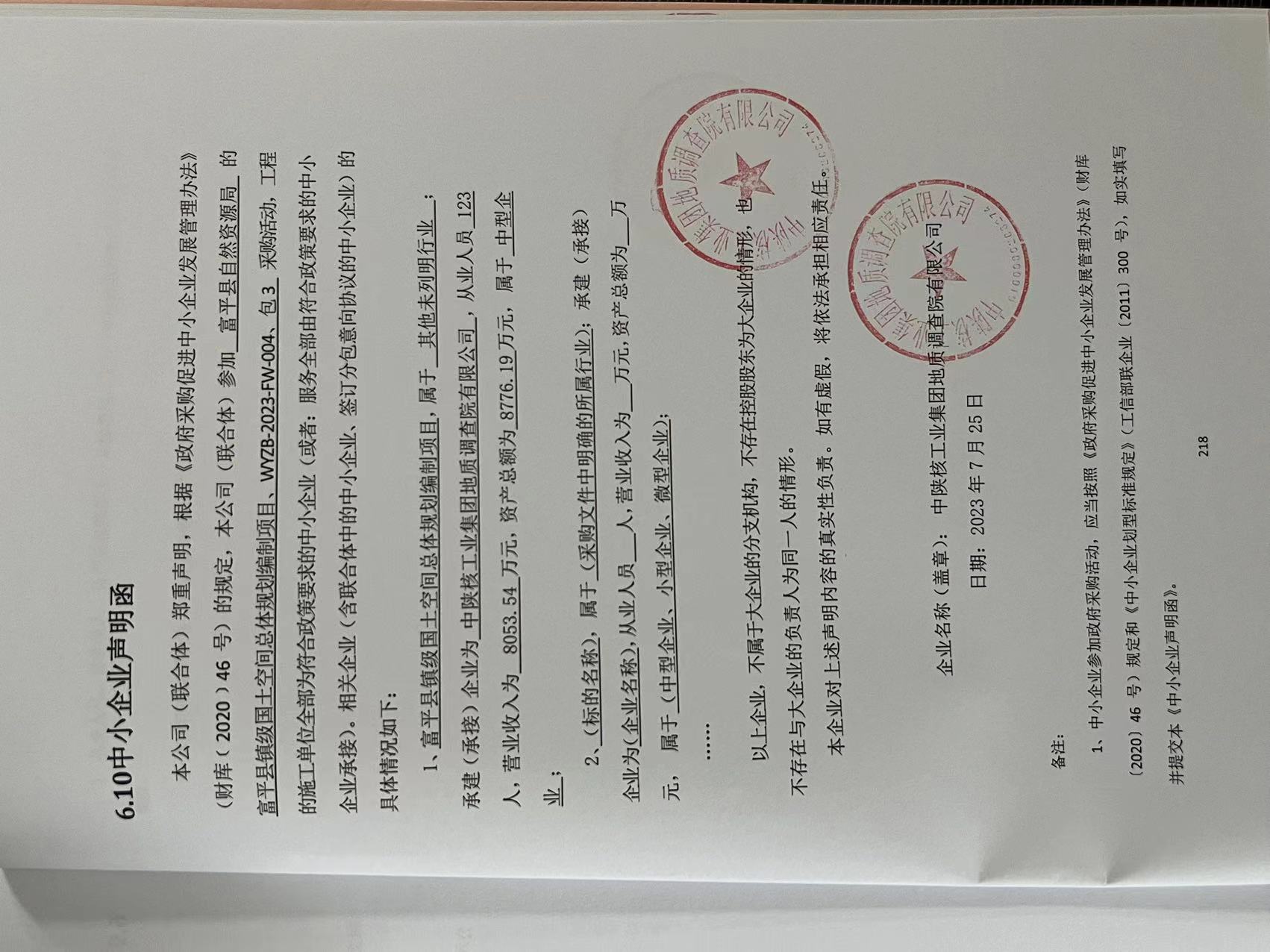 ----------------------------------招标机构发布信息原文:----------------------- -定稿-富平县镇级国土空间总体规划编制项目.pdf 中小企业声明函.png 中小企业声明函-2.jpg 中小企业声明函-3.jpg 中小企业声明函-4.jpg 中小企业声明函-5.doc 中小企业声明函-6.jpg 中小企业声明函-7.jpg 中小企业声明函-8.jpg 中小企业声明函-9.jpg 中小企业声明函-10.jpg 富平县自然资源局(本级)富平县镇级国土空间总体规划编制项目中标(成交)明细.pdf 十一、其他事项: ------------------------------------招标信息结束---------------------------- 标签: 中标 项目 富平县 总体规划 国土 公告 空间 上一篇: 2023年7月31日华春建设-公开招标-HCXM2023-204C-Z-福建省烟草公司厦门市公司关于2023年-2025年度叉车维保服务及配件采购项目(第二次)-中标结果公示 最新5000条招标信息列表: 滚动招标 |