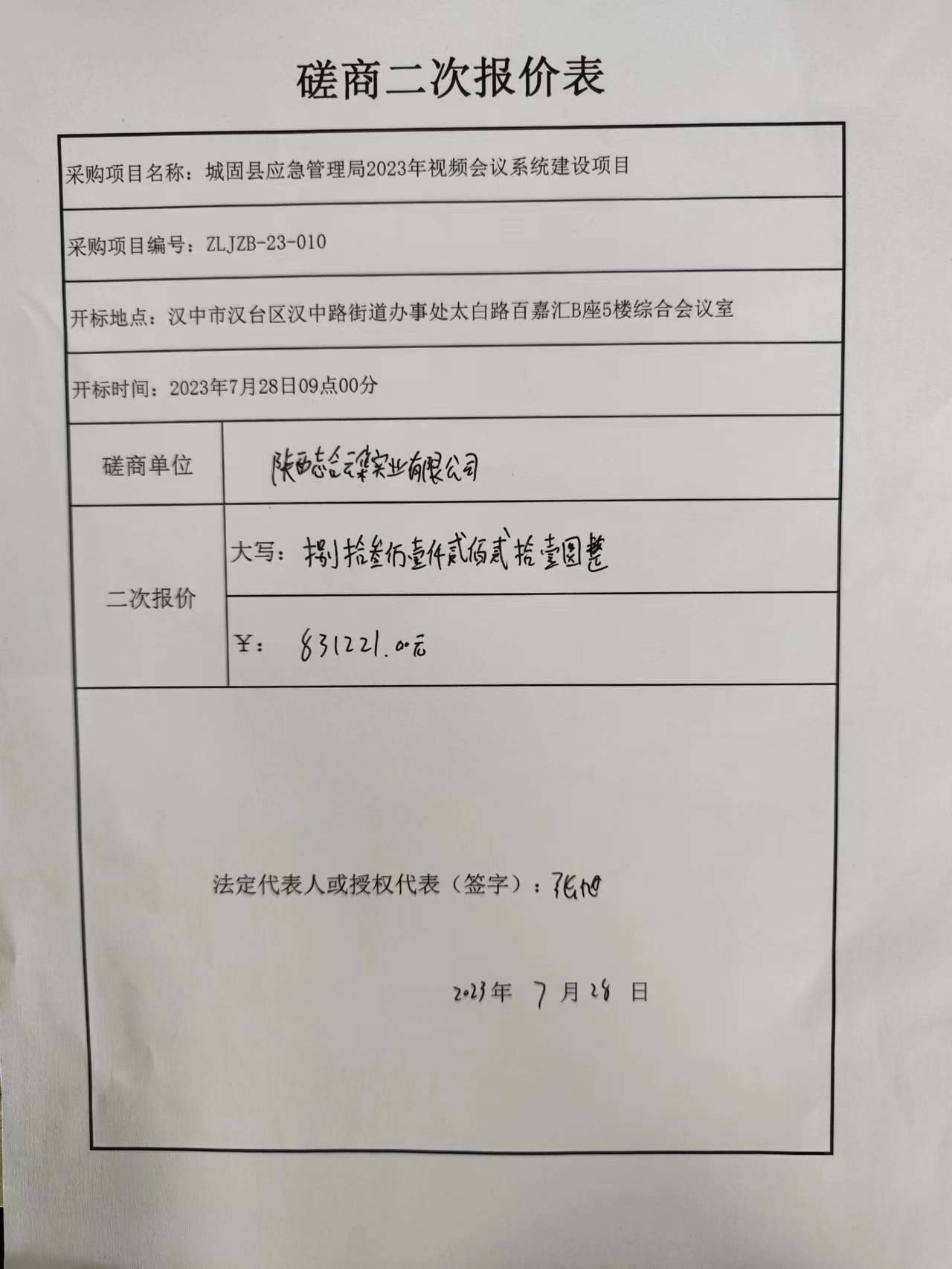 2023年7月31日城固县应急管理局2023年视频会议系统建设项目中标(成交)结果公告 |