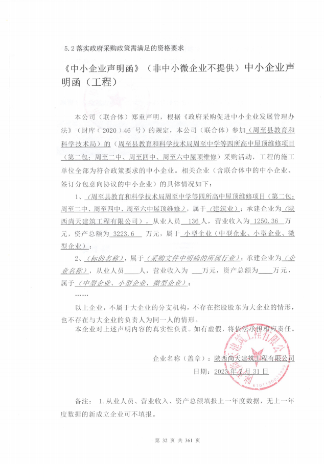 ----------------------------------招标机构发布信息原文:----------------------- 周至县教育和科学技术局周至中学等四所高中屋顶维修项目中标(成交)明细.pdf 周至县教育和科学技术局周至中学屋顶维修项目 第一标段 周至中学.doc 周至县教育和科学技术局周至中学屋顶维修项目 第二标段 周至二中、四中、六中.doc 第一标段强邦中小企业声明函.png 第二标段尚天中小企业声明函.png 十一、其他事项: ------------------------------------招标信息结束---------------------------- 标签: 项目 高中 周至 中标 周至县 屋顶 中学 上一篇: 2023年8月2日浙江省国际技术设备招标有限公司关于浙江省嘉善县第一人民医院128排及以上X线计算机断层扫描仪等设备项目中标(成交)结果公告 最新5000条招标信息列表: 滚动招标 |