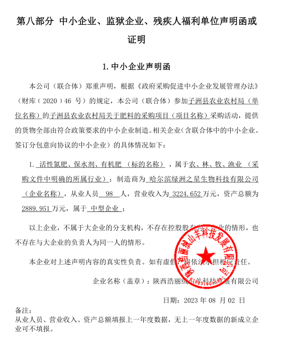 2023年8月3日子洲县农业农村局关于肥料的采购项目中标(成交)结果公告 |
