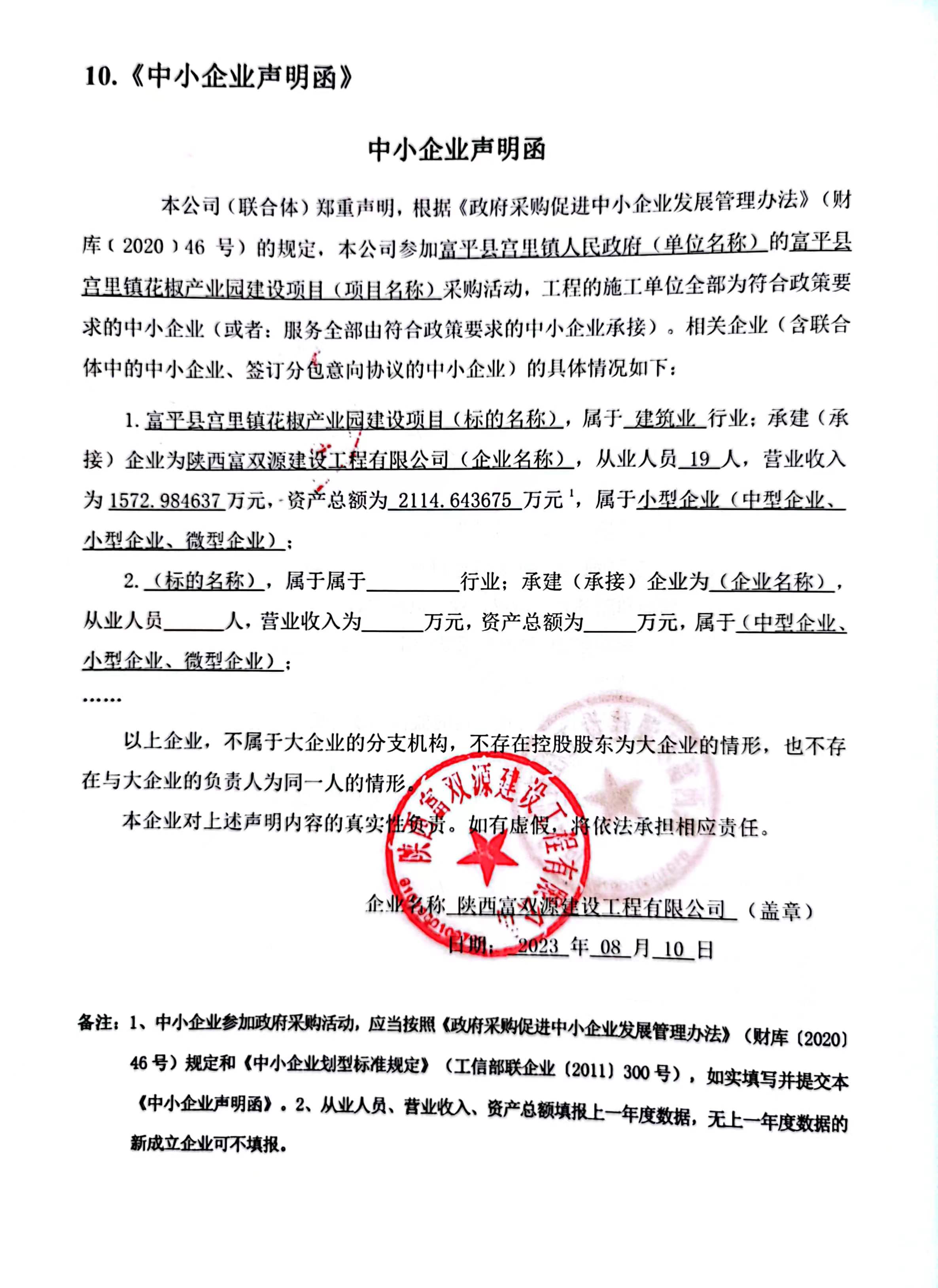 ----------------------------------招标机构发布信息原文:----------------------- 富平县宫里镇人民政府(本级)富平县宫里镇花椒产业园建设项目中标(成交)明细.pdf 中小企业声明函.jpg 富平县宫里镇花椒产业园建设项目----招标文件.pdf 十一、其他事项: ------------------------------------招标信息结束---------------------------- 标签: 中标 富平县 花椒 建设项目 宫里 产业园 公告 上一篇: 2023年8月11日幼儿体能锻炼区及舞台采购中标(成交)结果公告 最新5000条招标信息列表: 滚动招标 |