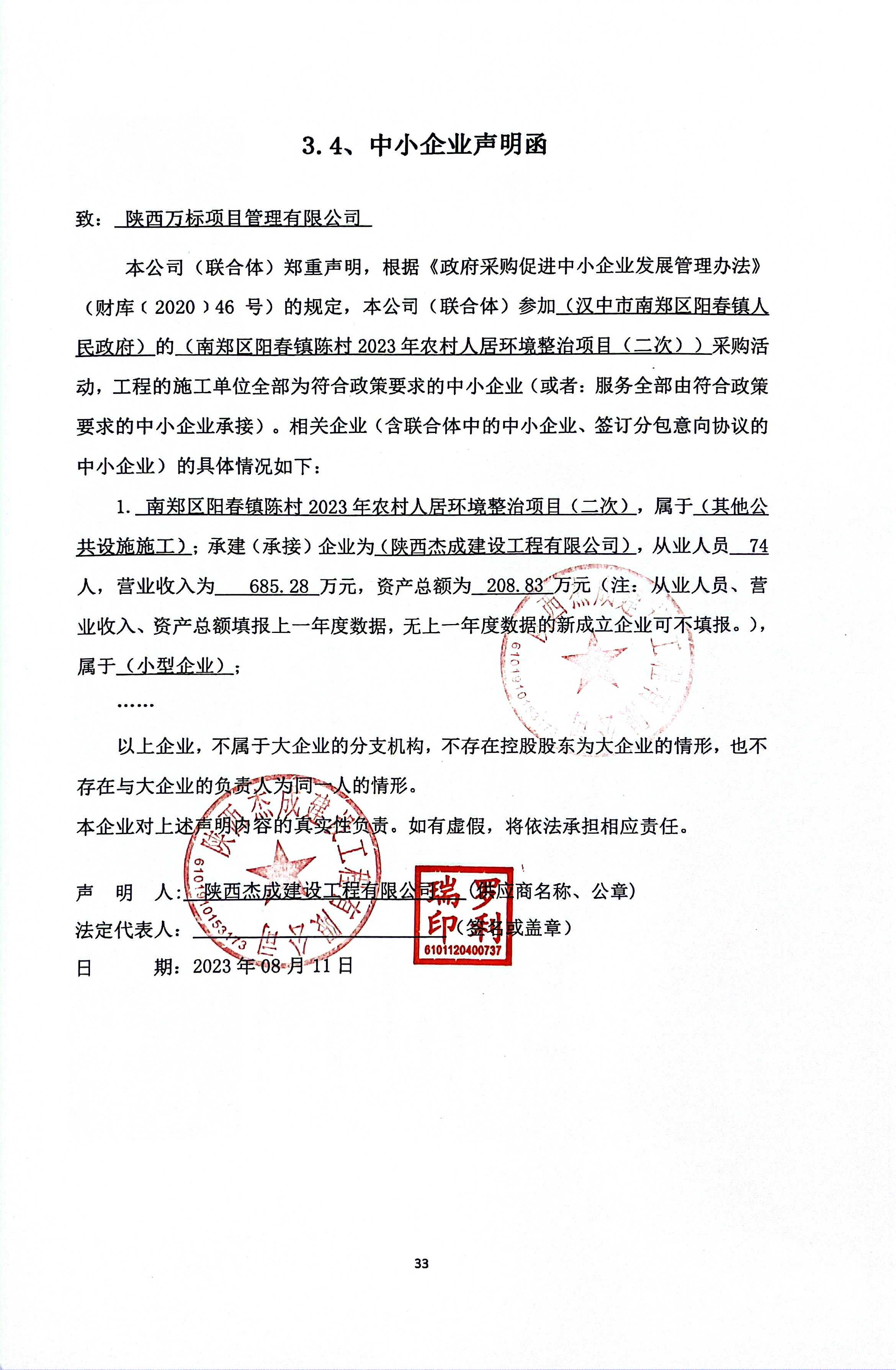 ----------------------------------招标机构发布信息原文:----------------------- 南郑县阳春镇政府南郑区阳春镇陈村2023年农村人居环境整治项目(二次)中标(成交)明细.pdf 中小企业声明函.jpg 南郑区阳春镇陈村2023年农村人居环境整治项目(二次).pdf 十一、其他事项: ------------------------------------招标信息结束---------------------------- 标签: 项目 阳春 南郑 中标 人居 环境整治 农村 上一篇: 2023年8月14日丰宁满族自治县乡村振兴局本级大滩片区人居粪污处理示范点项目公开招标中标公告 最新5000条招标信息列表: 滚动招标 |