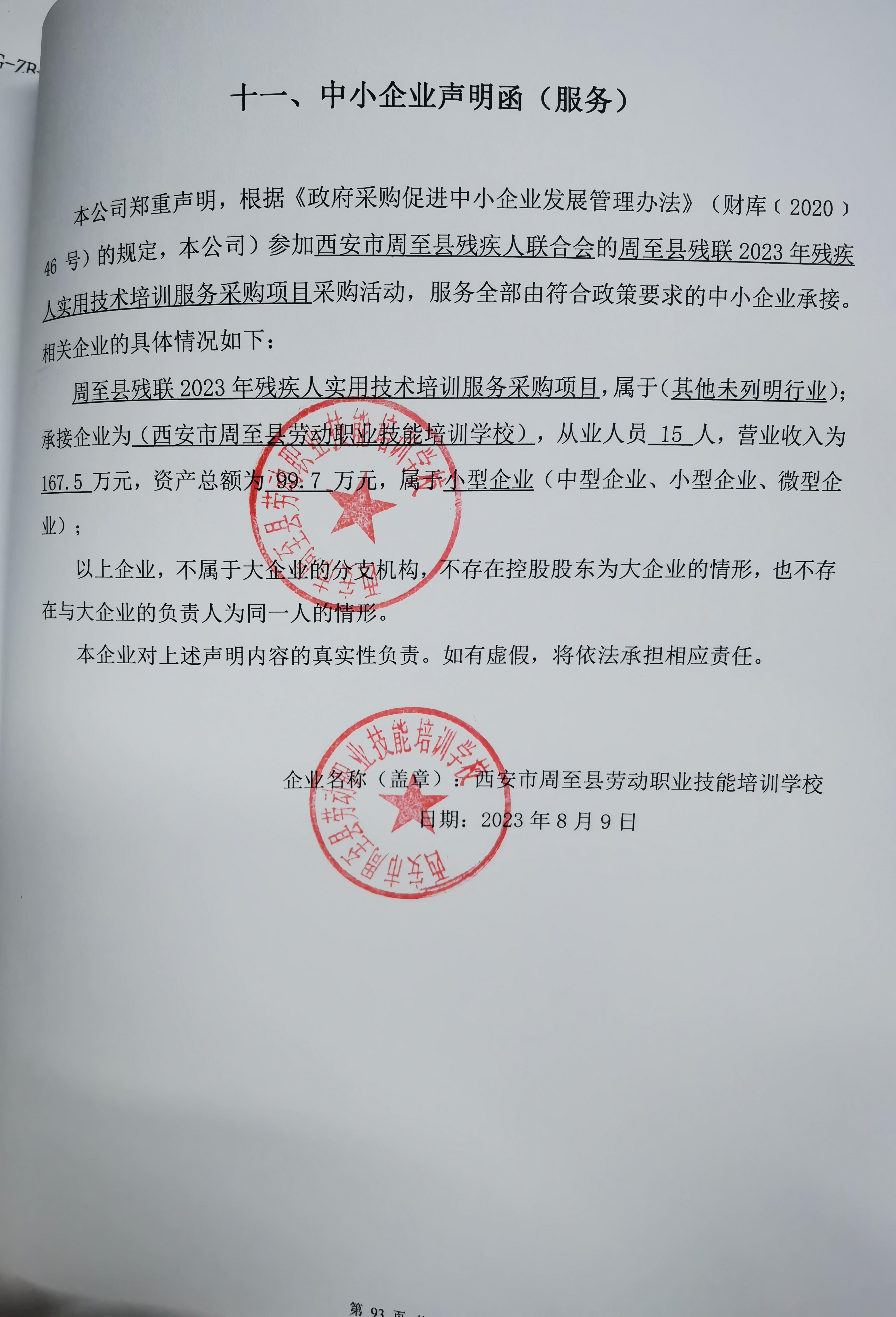 2023年8月16日周至县残联2023年残疾人实用技术培训服务采购项目中标(成交)结果公告 |