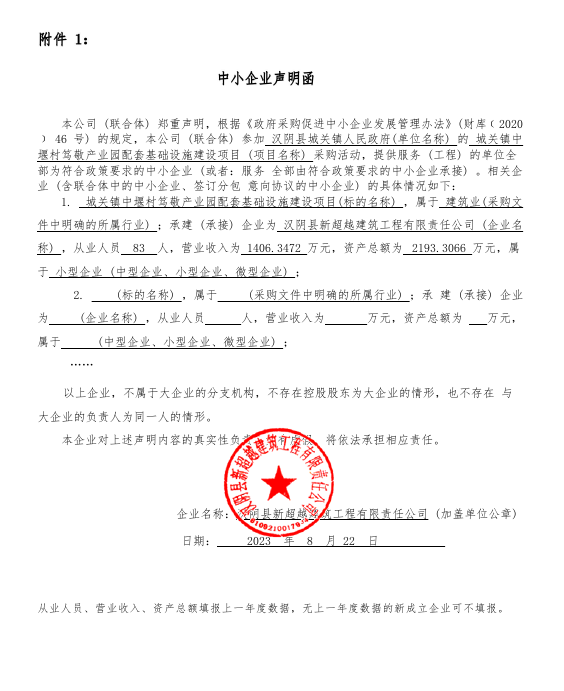 2023年8月23日汉阴县城关镇人民政府城关镇中堰村笃敬产业园配套基础设施建设项目中标(成交)结果公告 |