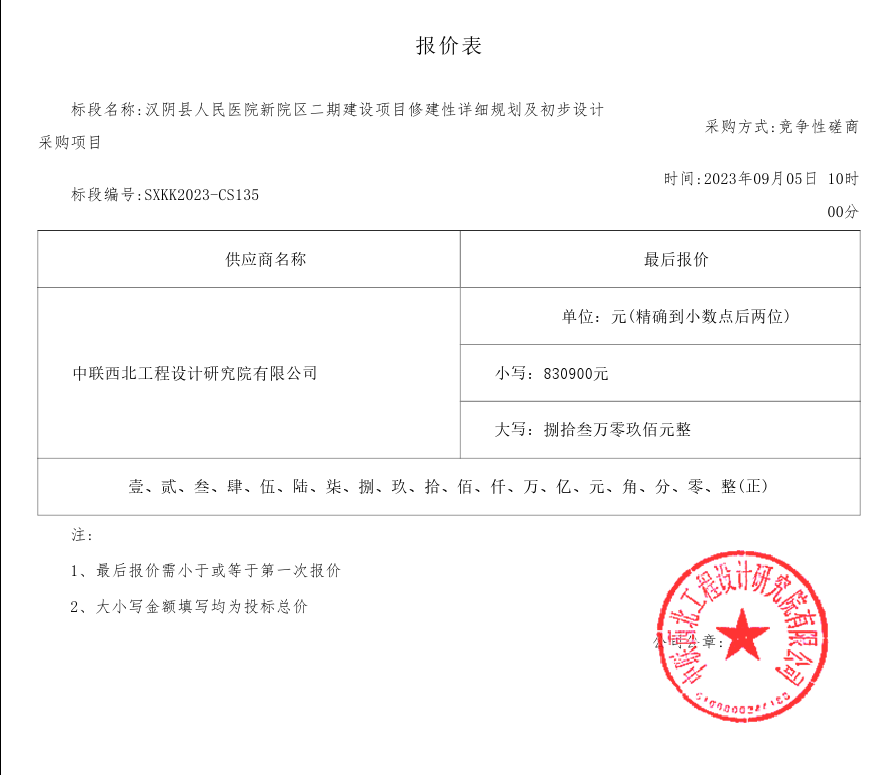 2023年9月6日汉阴县人民医院新院区二期建设项目修建性详细规划及初步设计采购项目中标(成交)结果公告 |