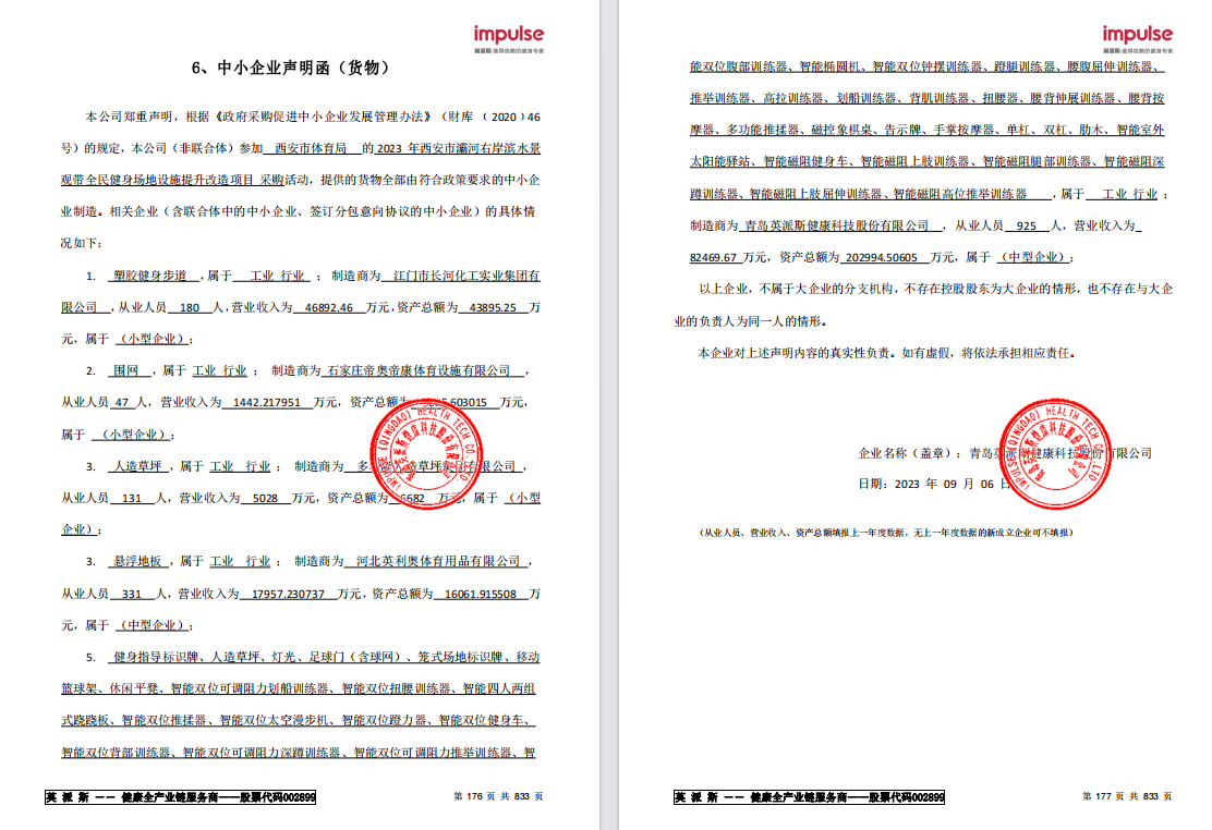 ----------------------------------招标机构发布信息原文:----------------------- 西安市体育局(本级)2023年西安市灞河右岸滨水景观带全民健身场地设施提升改造项目中标(成交)明细.pdf 英派斯中小声明函.png 定版-(1616-1)-招标文件-2023年西安市灞河右岸滨水景观带全民健身场地设施提升改造项目-西安市体育局.docx 报价一览表.docx 十一、其他事项: ------------------------------------招标信息结束---------------------------- 标签: 中标 西安市 体育局 水景 场地 改造项目 全民健身 上一篇: 2023年9月7日辽宁省烟草公司沈阳市公司2023-2024年卷烟包装贴标设备维修零配件及服务采购项目中标公告 最新5000条招标信息列表: 滚动招标 |