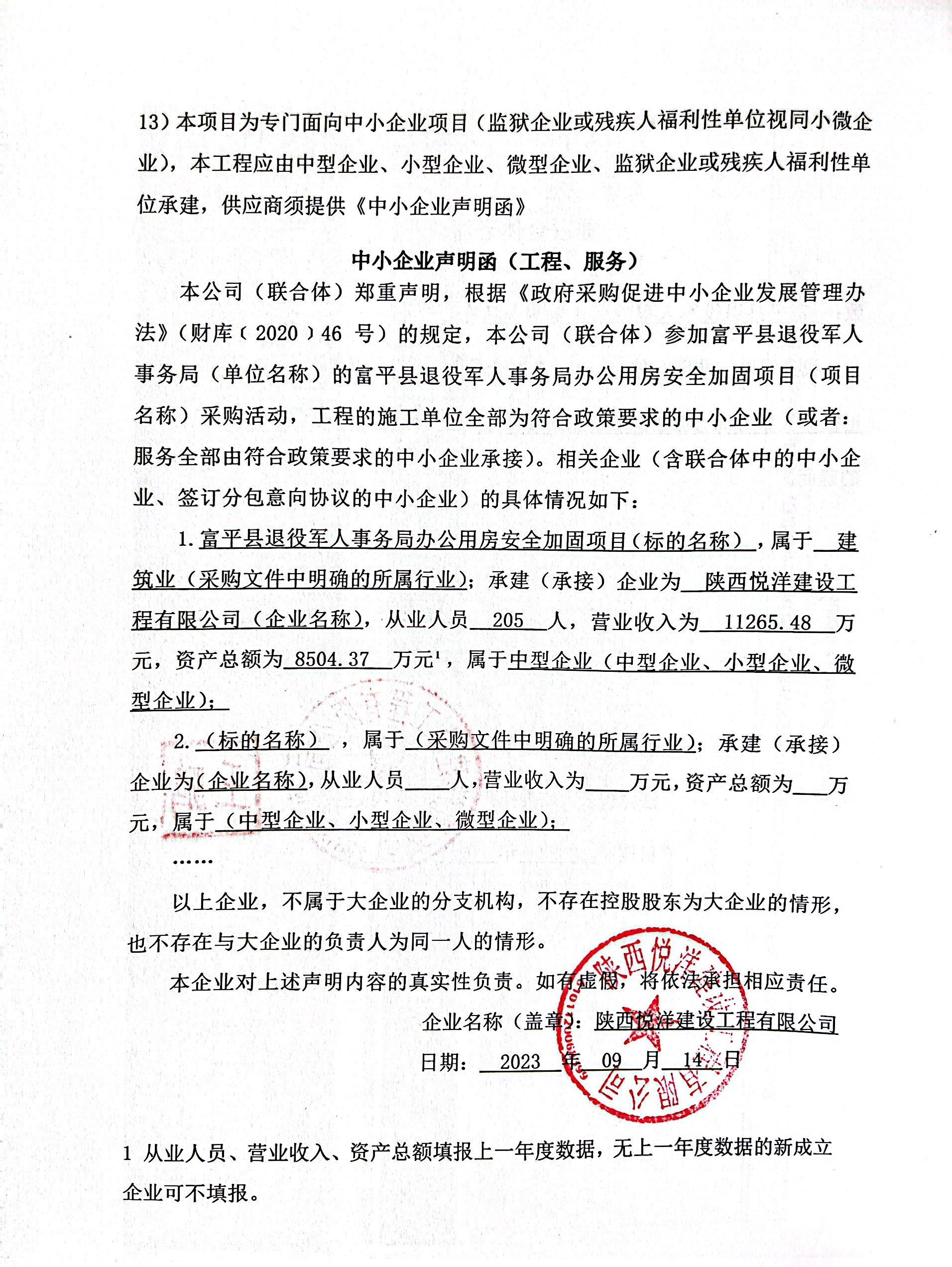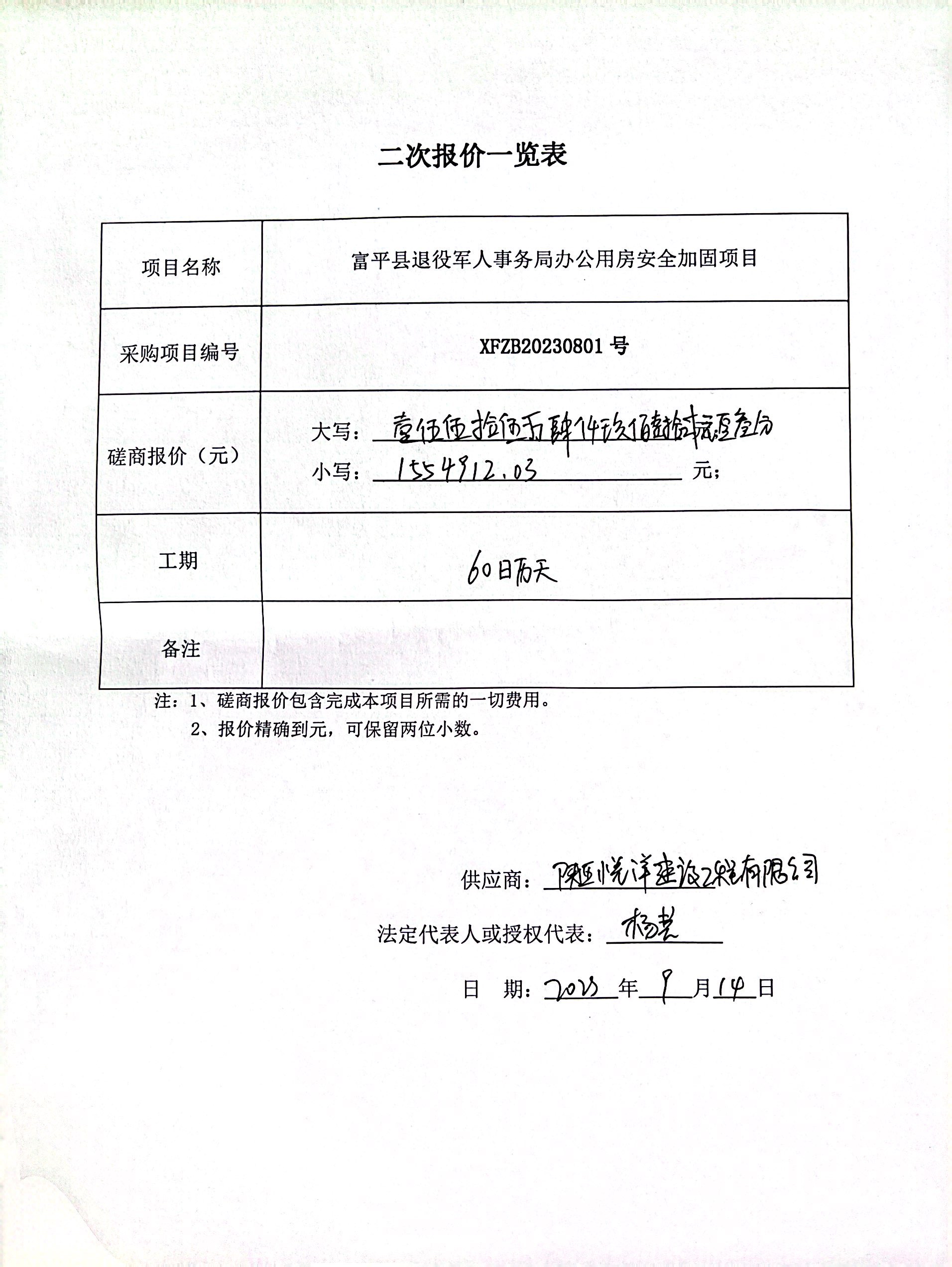 2023年9月15日富平县退役军人事务局办公用房安全加固项目成交结果公告 |