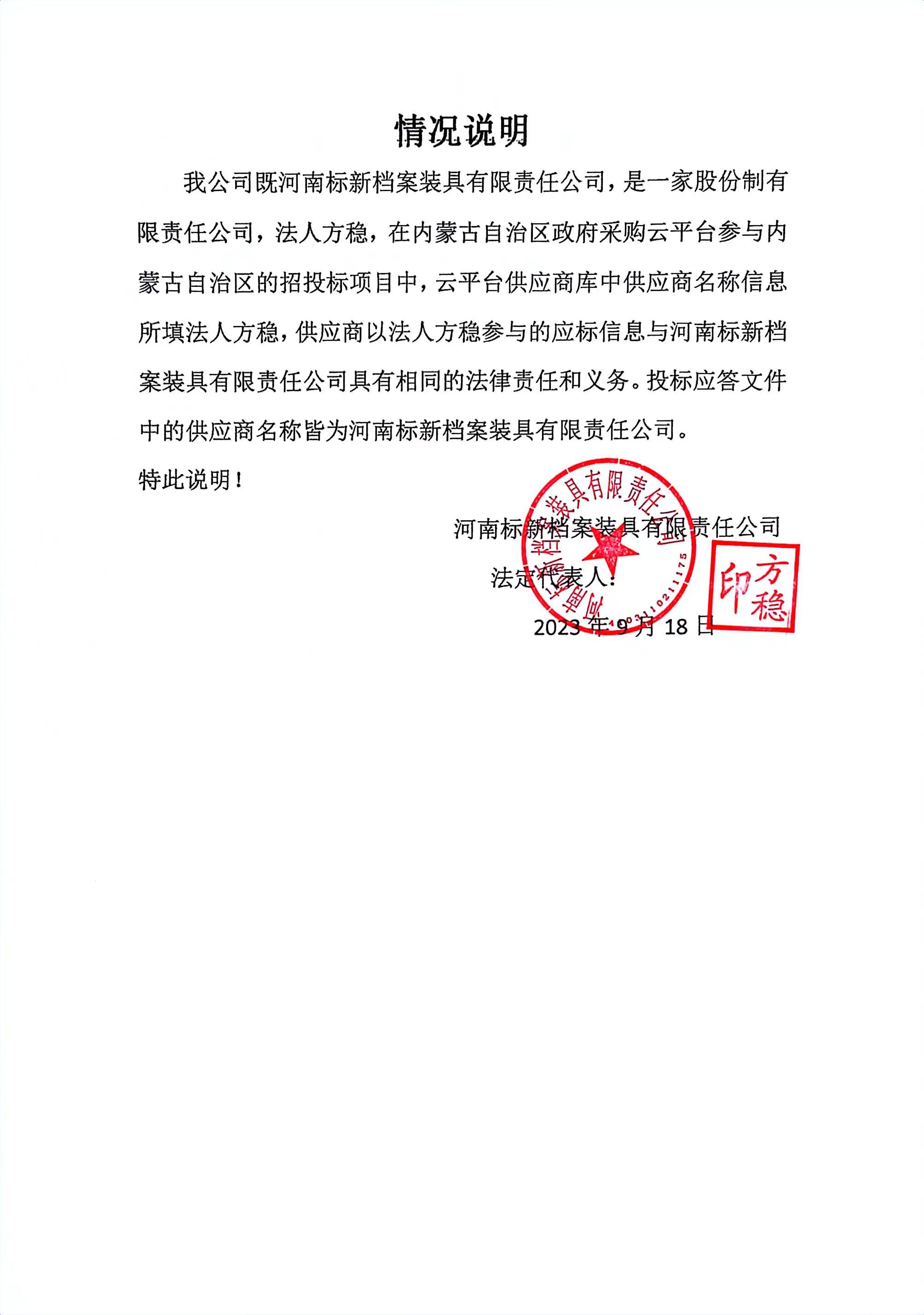 ----------------------------------招标机构发布信息原文:----------------------- 档案数字化项目报价明细附件.pdf 合同包1:中小企业或残疾人福利单位声明函(方稳).pdf b76860322628be26fdaece0ea01ed0d.jpg 十一、其他事项: ------------------------------------招标信息结束---------------------------- 标签: 项目 突泉县 档案 公告 史志 上一篇: 2023年9月18日日照市傅疃河水资源调度方案(计划)编制服务项目中标(成交)公告 最新5000条招标信息列表: 滚动招标 |
