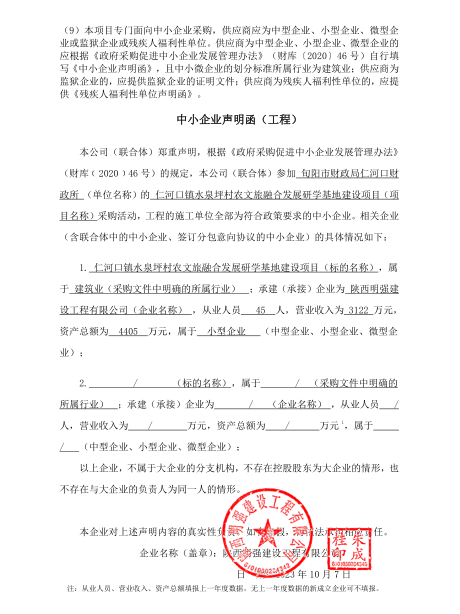 ----------------------------------招标机构发布信息原文:----------------------- 054-磋商文件.doc 中小企业承诺书.png 旬阳市财政局仁河口财政所仁河口镇水泉坪村农文旅融合发展研学基地建设项目中标(成交)明细.pdf 十一、其他事项: ------------------------------------招标信息结束---------------------------- 标签: 中标 水泉 河口 建设项目 基地 公告 研学 上一篇: 2023年10月9日准格尔旗迎泽街道办事处迎泽街道各小区垃圾分类厅设备采购结果公告 最新5000条招标信息列表: 滚动招标 |