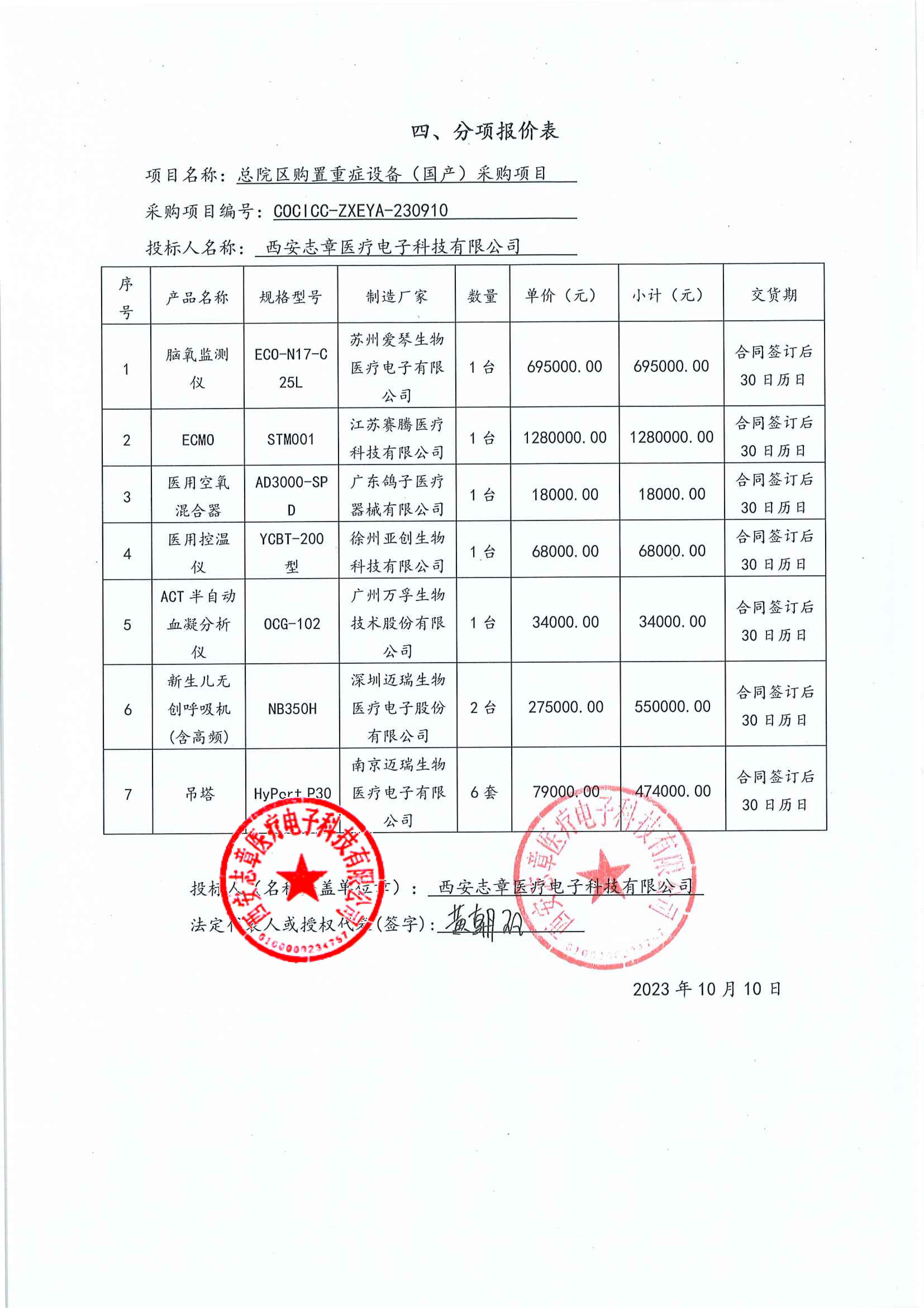----------------------------------招标机构发布信息原文:----------------------- 西安市儿童医院总院区购置重症设备(国产)采购项目中标(成交)明细.pdf 报价明细表.jpg 西安市儿童医院总院区购置重症设备(国产)采购项目招标文件.doc 十一、其他事项: ------------------------------------招标信息结束---------------------------- 标签: 项目 中标 采购 儿童医院 西安市 重症 总院 上一篇: 2023年10月17日汕头大学医学院附属肿瘤医院常规病理设备采购项目结果公告 最新5000条招标信息列表: 滚动招标 |