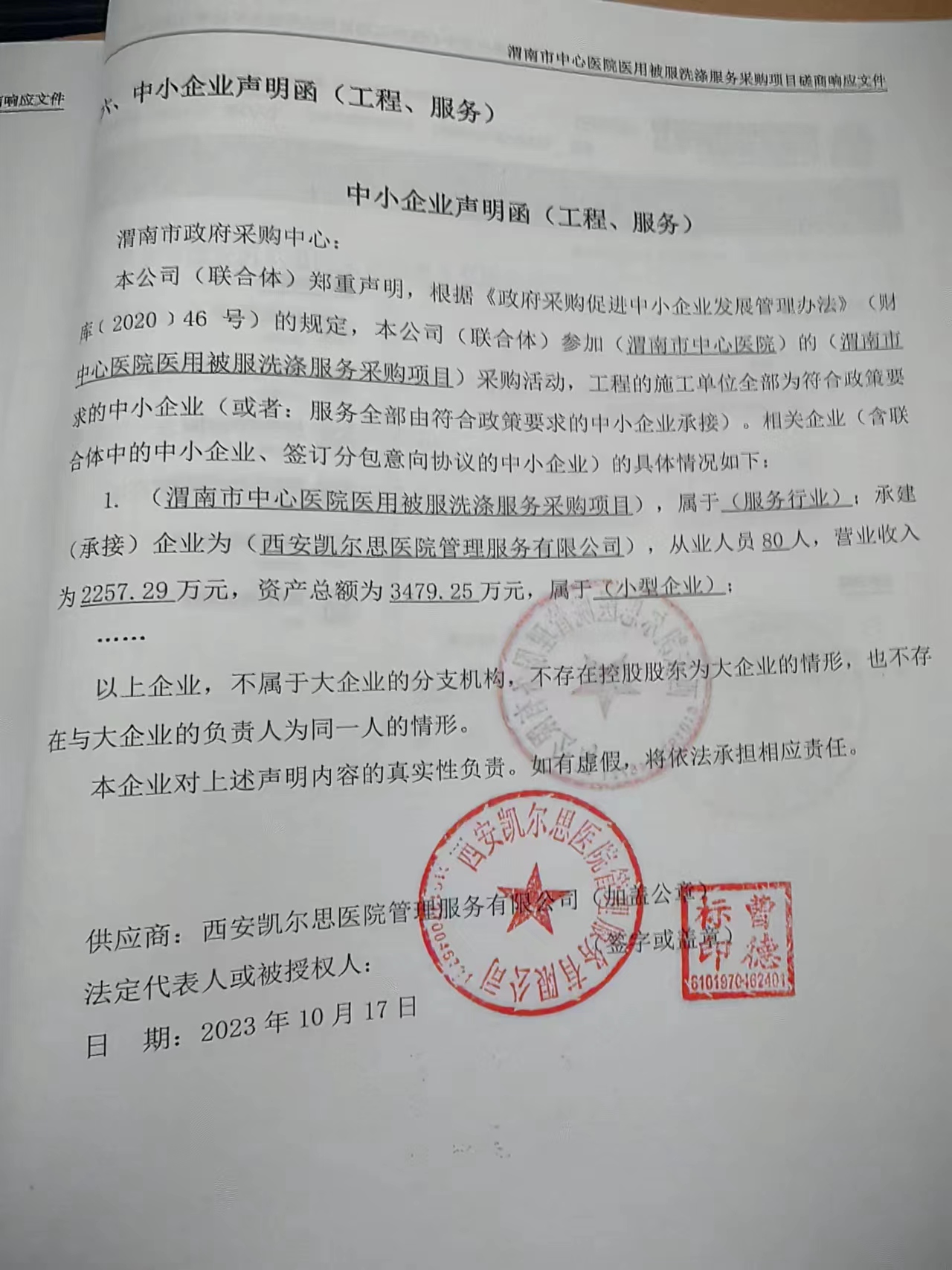 2023年10月19日渭南市中心医院医用被服洗涤服务采购项目中标(成交)结果公告 |