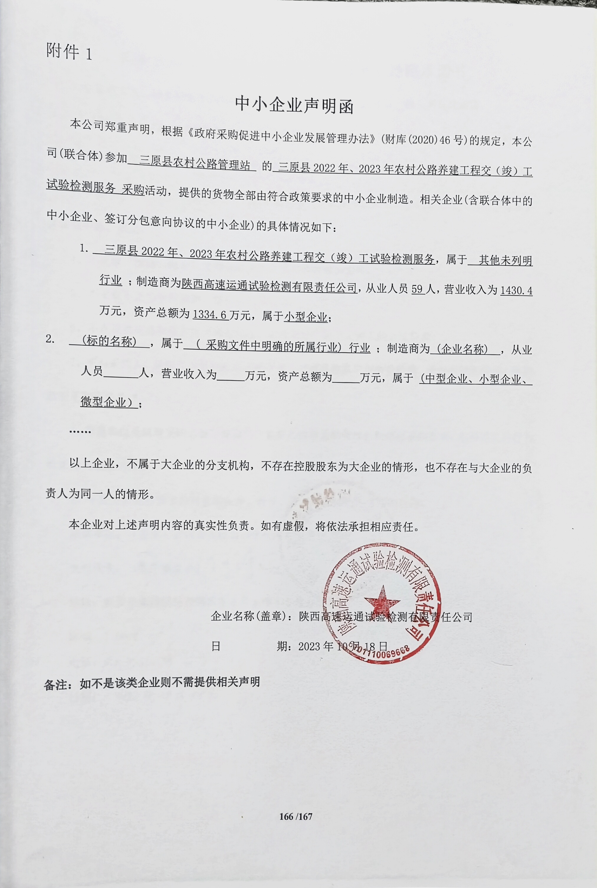 ----------------------------------招标机构发布信息原文:----------------------- 三原县农村公路管理站三原县2022年、2023年农村公路养建工程交(竣)工试验检测服务中标(成交)明细.pdf 二次报价单.jpg 中小企业声明函.jpg 十一、其他事项: ------------------------------------招标信息结束---------------------------- 标签: 中标 农村公路 管理站 建工 公告 上一篇: 2023年10月20日长海县县城区锅炉房消防工程中标公告 最新5000条招标信息列表: 滚动招标 |