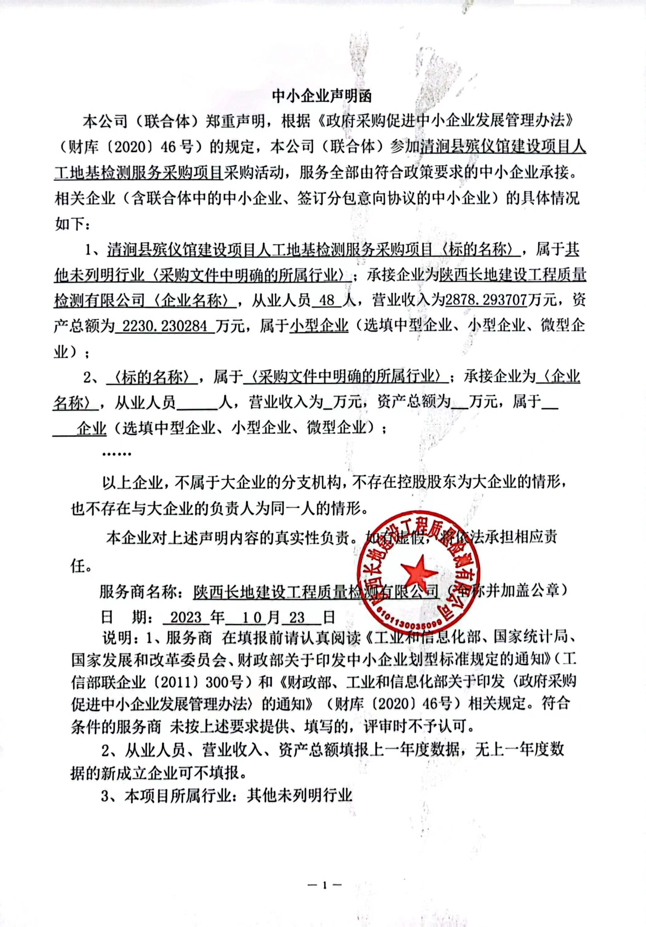 2023年10月25日清涧县殡仪馆建设项目人工地基检测服务采购项目成交结果公告 |