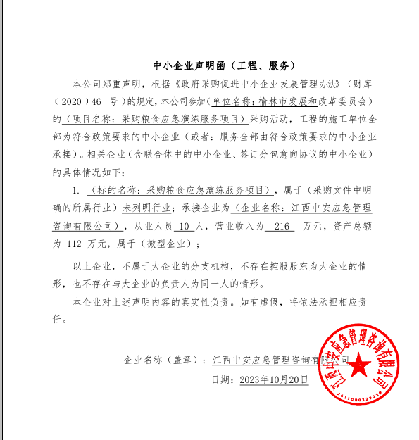 2023年10月26日榆林市发展和改革委员会采购粮食应急演练服务项目中标(成交)结果公告 |