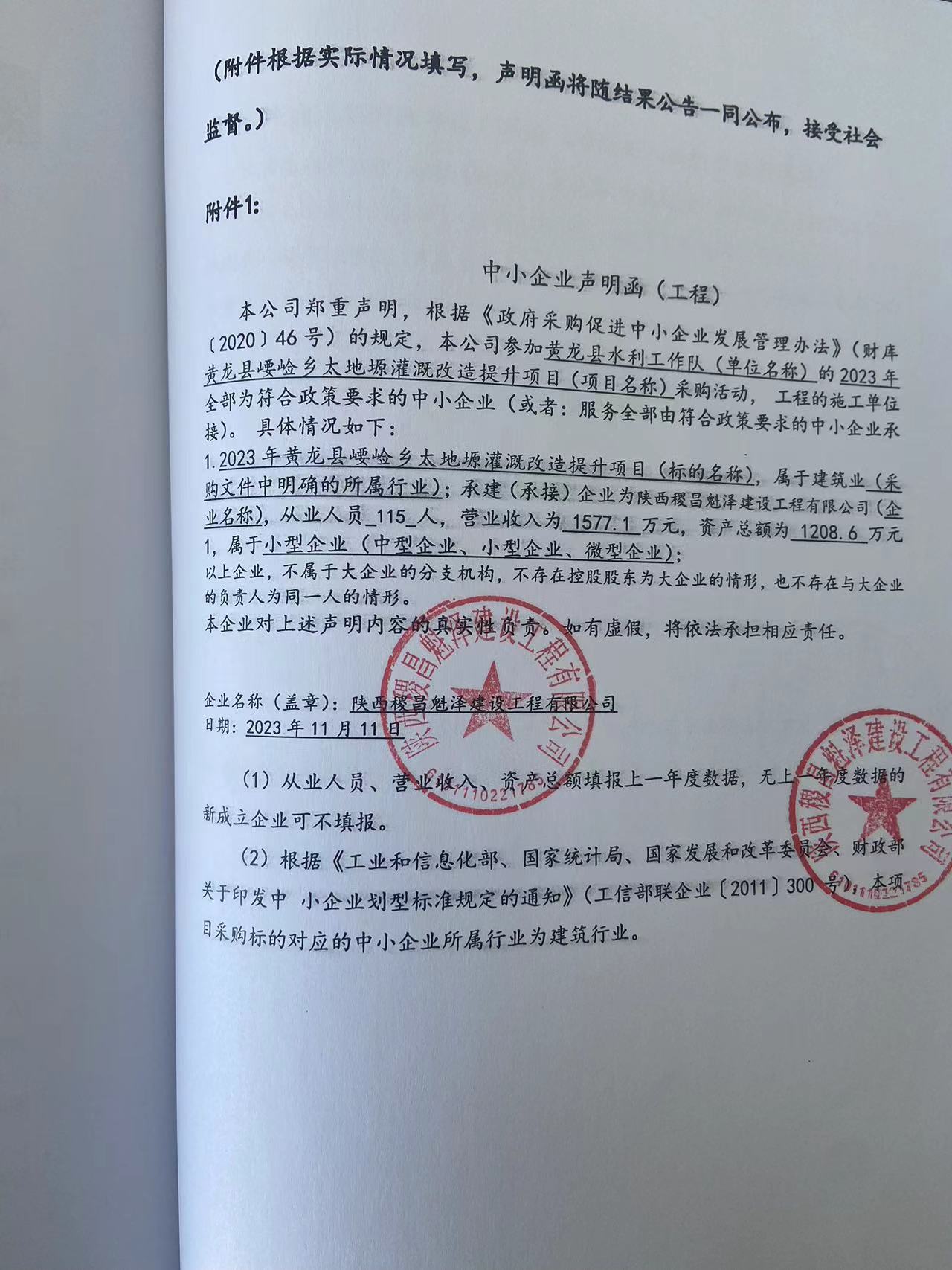 2023年11月16日黄龙县水利工作队2023年黄龙县崾崄乡太地塬灌溉改造提升项目中标(成交)结果公告 |