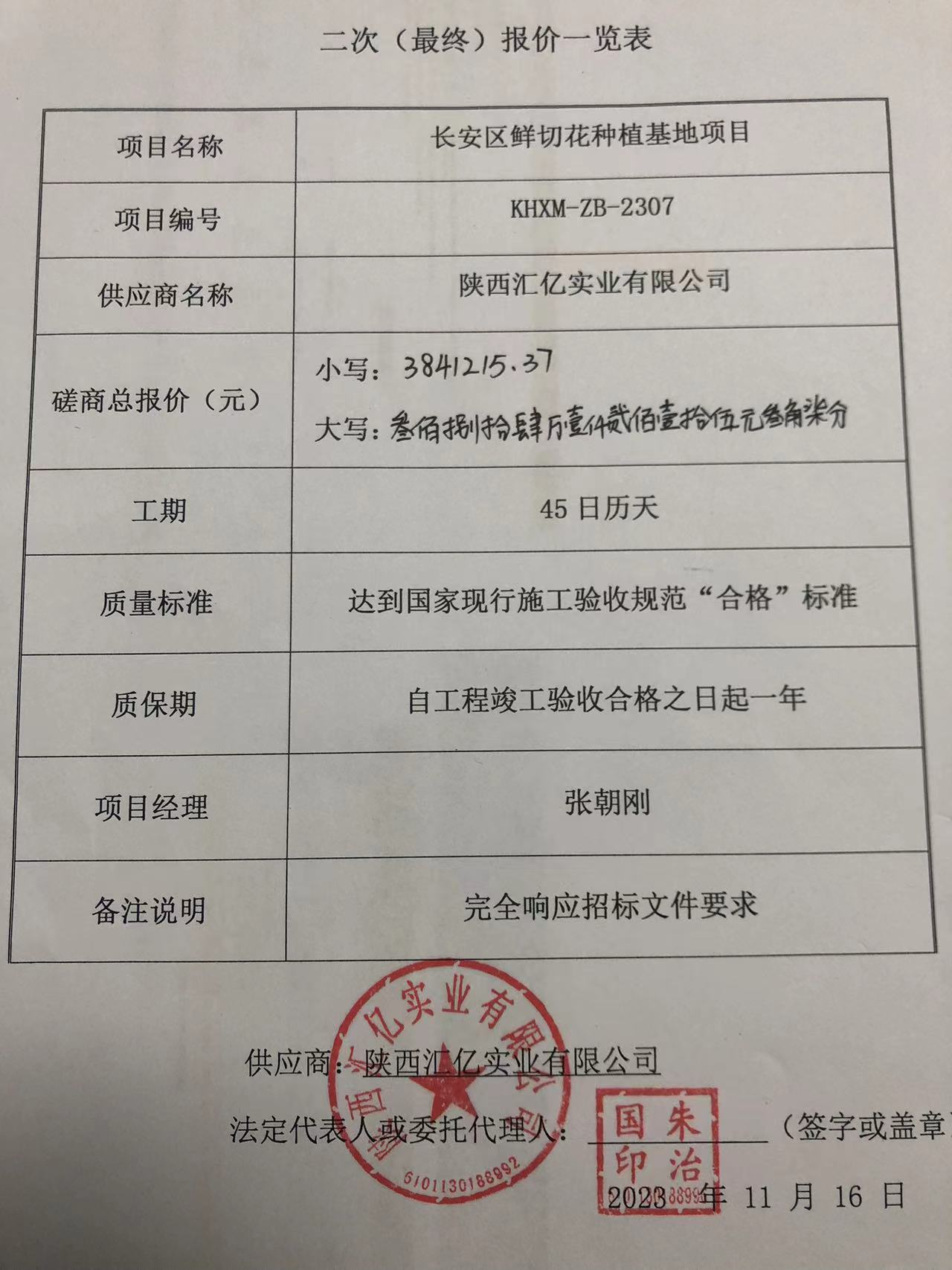2023年11月17日长安区鲜切花种植基地项目成交结果公告 |