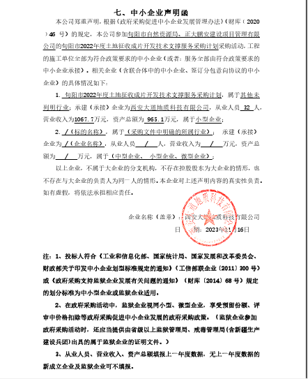 ----------------------------------招标机构发布信息原文:----------------------- 大道中小声明.png 旬阳市自然资源局旬阳市2022年度土地征收成片开发技术支撑服务采购计划中标(成交)明细.pdf 十一、其他事项: ------------------------------------招标信息结束---------------------------- 标签: 采购 中标 旬阳 成片 土地 年度 计划 上一篇: 2023年11月20日互联网资源整合营销团队服务项目结果公告(采购包1、2) 最新5000条招标信息列表: 滚动招标 |