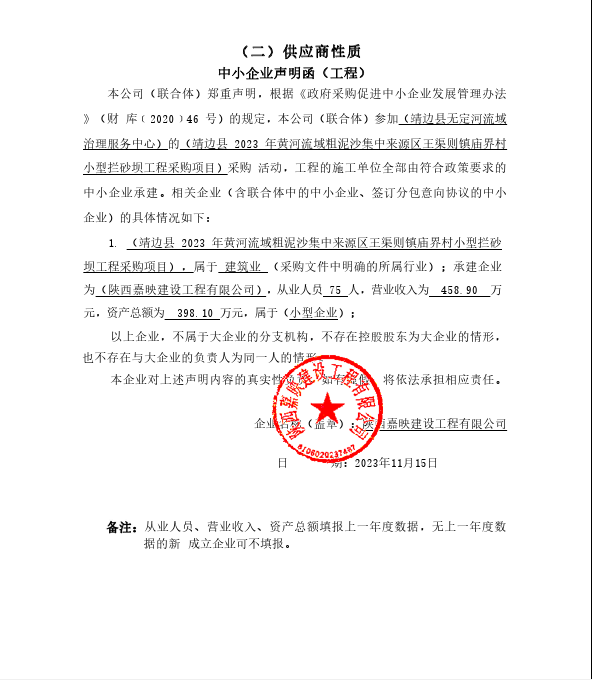 2023年11月21日靖边县2023年黄河流域粗泥沙集中来源区王渠则镇庙界村小型拦砂坝工程采购项目中标(成交)结果公告 |
