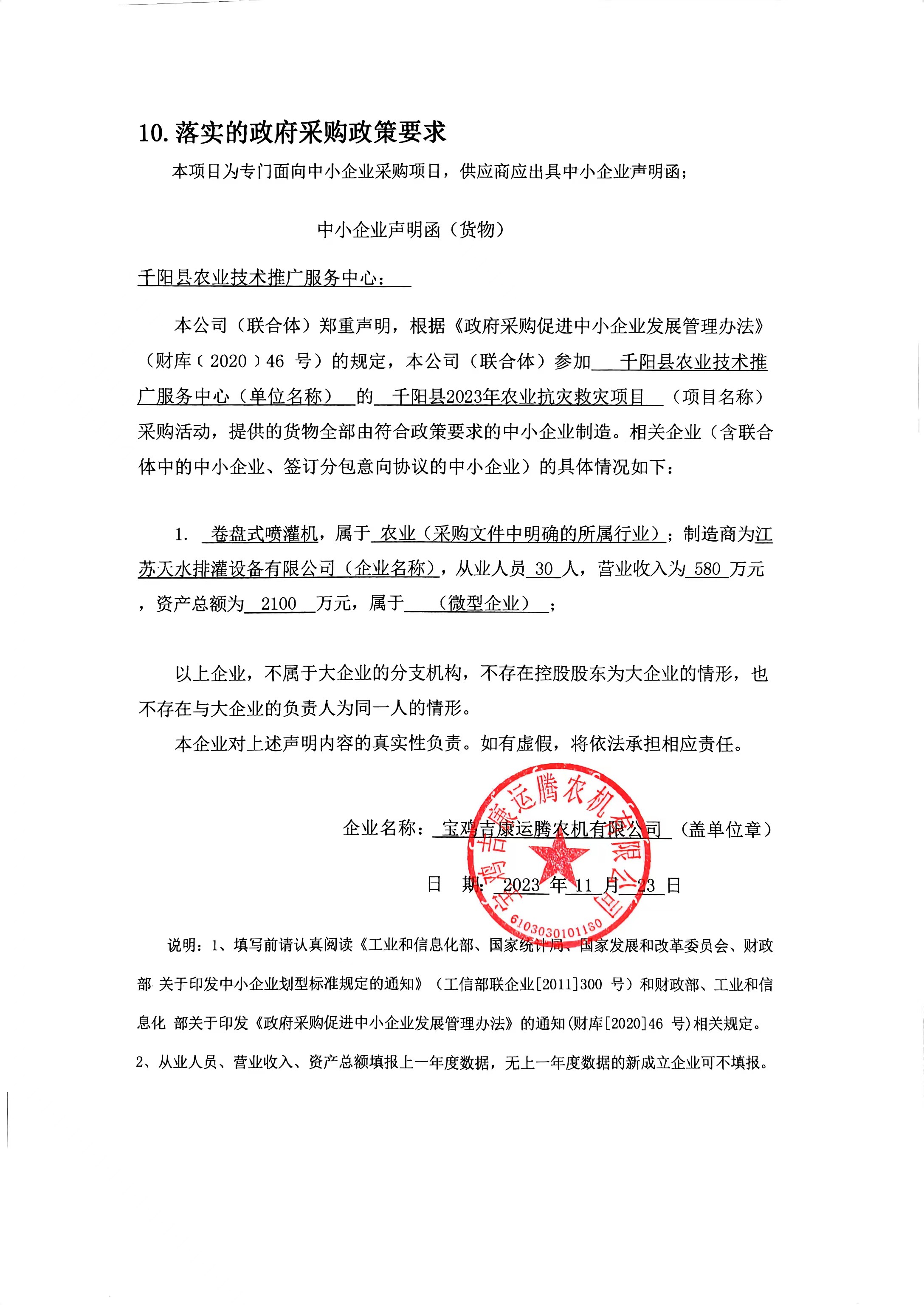 2023年11月24日千阳县2023年农业抗灾救灾项目中标(成交)结果公告 |
