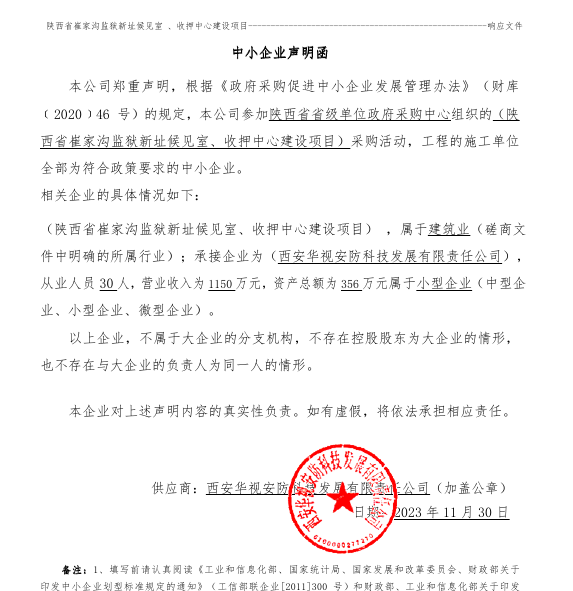 ----------------------------------招标机构发布信息原文:----------------------- 陕西省崔家沟监狱新址候见室、收押中心建设项目.pdf 中小企业声明函.png 陕西省崔家沟监狱新址候见室、收押中心建设项目中标(成交)明细.pdf 最后报价表.png 十一、其他事项: ------------------------------------招标信息结束---------------------------- 标签: 中标 陕西省 新址 建设项目 监狱 公告 中心 上一篇: 2023年12月1日陕西省人民代表大会常务委员会办公厅机关机关物业服务项目中标(成交)结果公告 最新5000条招标信息列表: 滚动招标 |