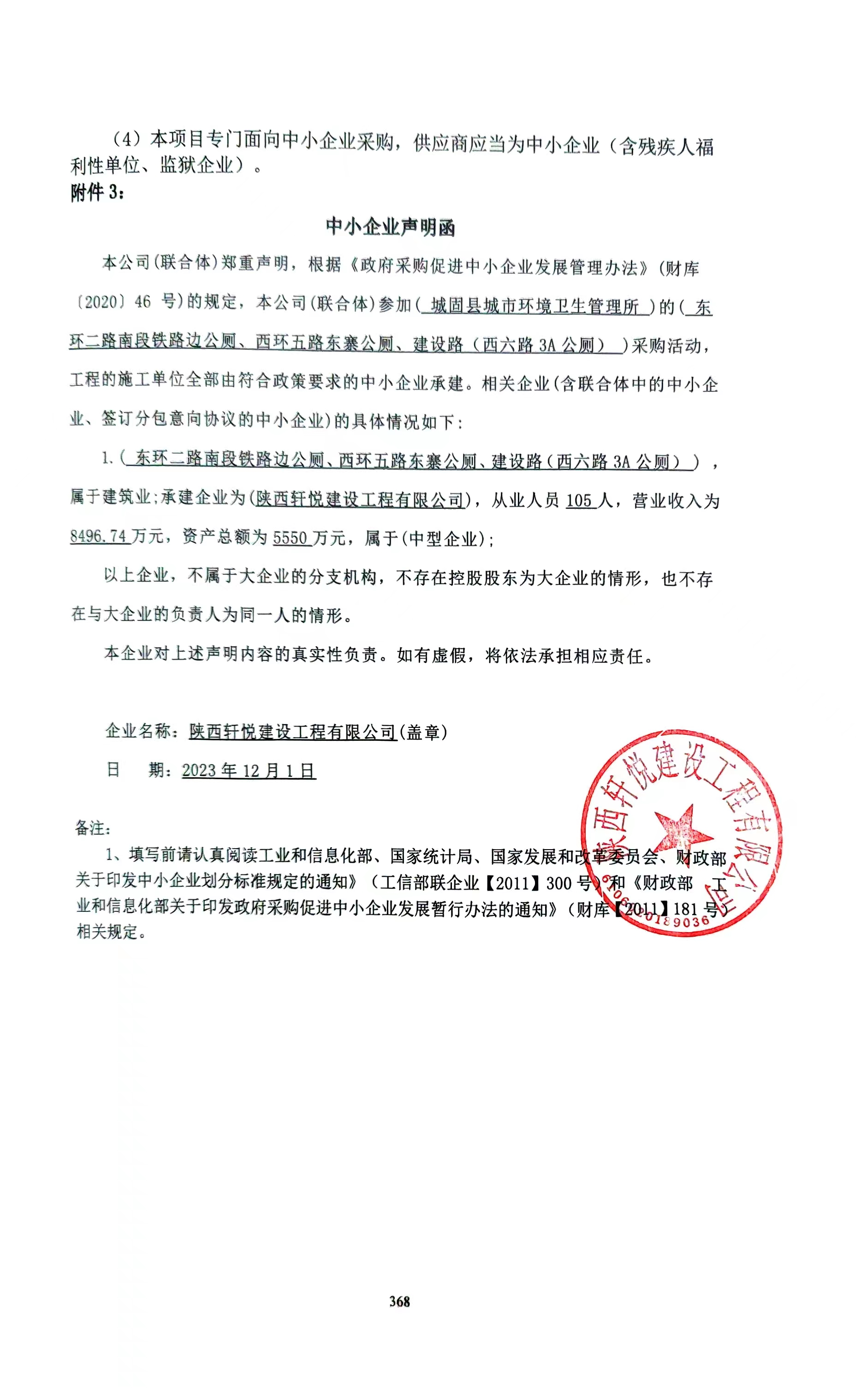 2023年12月4日城固县城市环境卫生管理所东环二路南段铁路边公厕、西环五路东寨公厕、建设路(西六路3A公厕)中标(成交)结果公告 |
