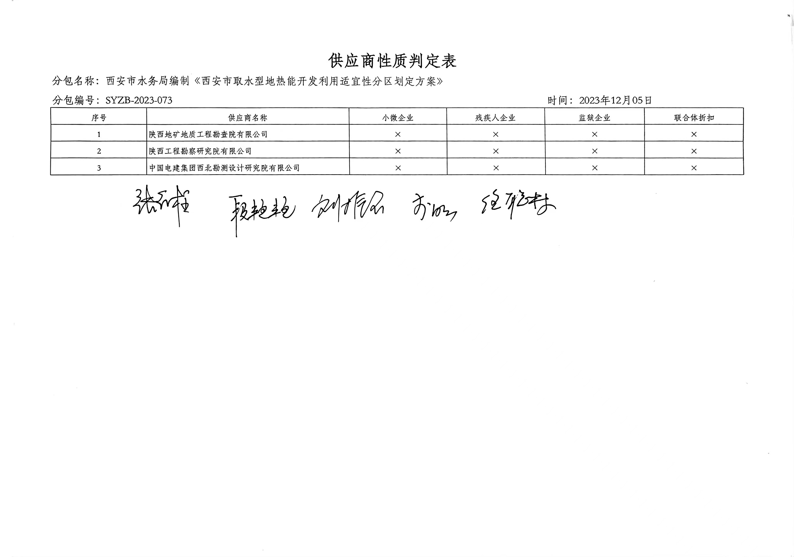 2023年12月6日西安市水务局(本级)编制《西安市取水型地热能开发利用适宜性分区划定方案》中标(成交)结果公告 |