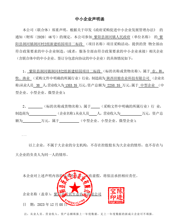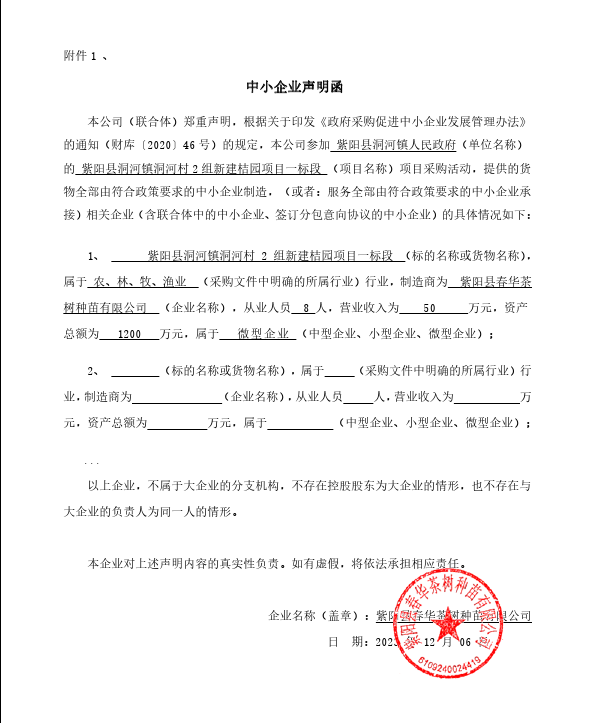 ----------------------------------招标机构发布信息原文:----------------------- 一标中小企业声明函.png 二标中小企业声明函.png 紫阳县洞河镇人民政府紫阳县洞河镇洞河村2组新建桔园项目中标(成交)明细.pdf 十一、其他事项: ------------------------------------招标信息结束---------------------------- 标签: 中标 项目 紫阳县 公告 洞河镇洞河村 上一篇: 2023年12月11日唐山市人民医院真空超声清洗消毒器竞争性谈判中标公告 最新5000条招标信息列表: 滚动招标 |