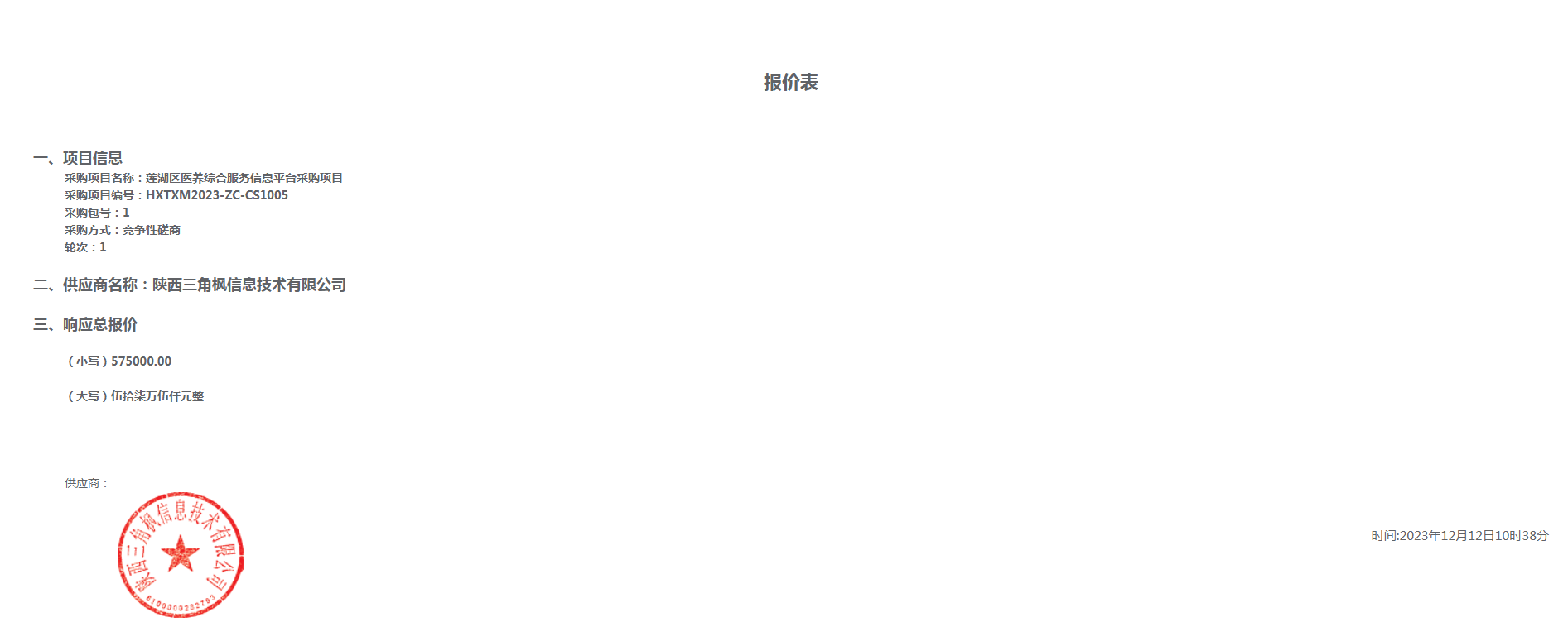 2023年12月13日西安市莲湖区卫生健康局莲湖区医养综合服务信息平台采购项目中标(成交)结果公告 |