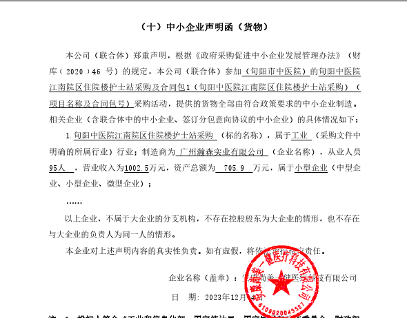 ----------------------------------招标机构发布信息原文:----------------------- 中小企业声明函(尚美).png 旬阳市中医院旬阳中医院江南院区住院楼护士站采购中标(成交)明细.pdf 十一、其他事项: ------------------------------------招标信息结束---------------------------- 标签: 采购 中标 旬阳 江南 中医院 护士 公告 上一篇: 2023年12月18日广南县南屏镇人民政府广南县南屏镇马街社区大坝子自然村农村公益事业财政奖补项目中标公告 最新5000条招标信息列表: 滚动招标 |