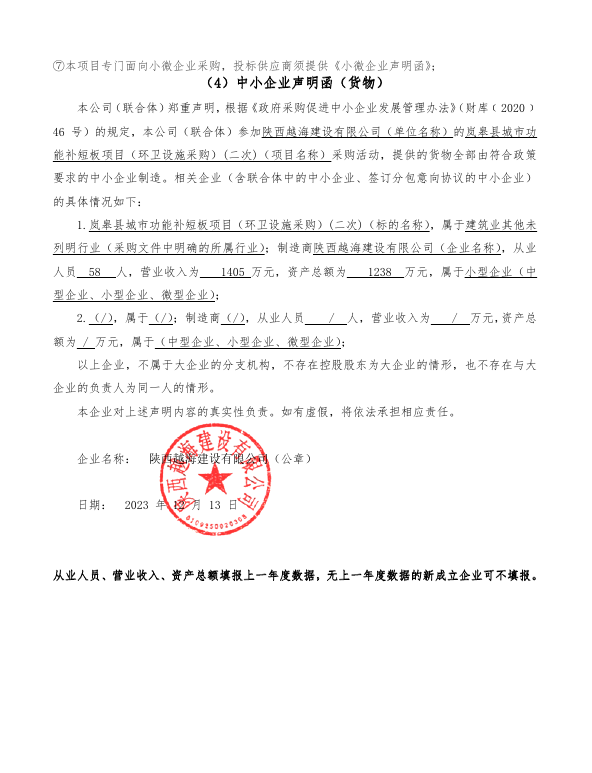 ----------------------------------招标机构发布信息原文:----------------------- 岚皋县城市功能补短板项目(环卫设施采购)-(二次)招标文件.docx 中小企业声明函.png 岚皋县住房和城乡建设局岚皋县城市功能补短板项目(环卫设施采购)(二次)中标(成交)明细.pdf 十一、其他事项: ------------------------------------招标信息结束---------------------------- 标签: 采购 中标 项目 岚皋县 建设局 环卫 城乡 上一篇: 2023年12月18日中小河流舒兰市珠琦河治理工程中标(成交)结果公告 最新5000条招标信息列表: 滚动招标 |
