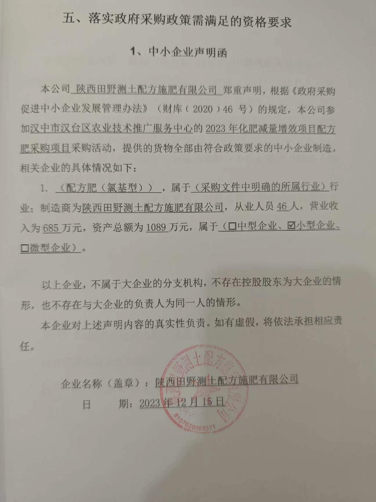 ----------------------------------招标机构发布信息原文:----------------------- 定稿-2023年化肥减量增效项目配方肥采购项目.pdf 汉中市汉台区农业技术推广服务中心2023年化肥减量增效项目配方肥采购项目中标(成交)明细.pdf 中小企业声明函.jpg 十一、其他事项: ------------------------------------招标信息结束---------------------------- 标签: 项目 采购 中标 化肥 配方 减量 公告 上一篇: 2023年12月18日新巴尔虎左旗第二边境管理大队物业服务社会化保障项目中标(成交)公告 最新5000条招标信息列表: 滚动招标 |